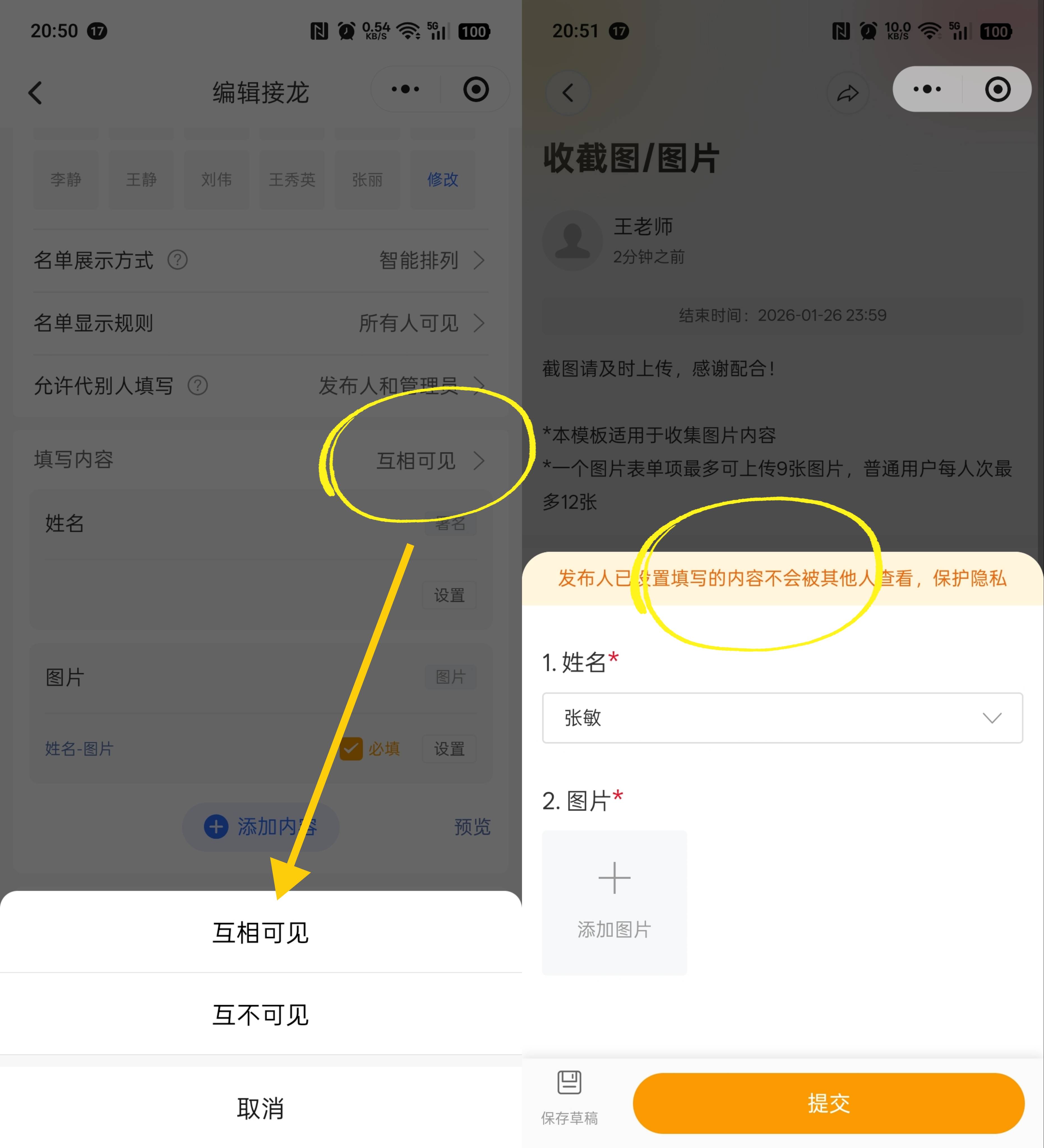 用接龙管家发接龙,能开 “内容互不可见”,只有你(发布人)能看收集到的信息,其他人根本看不到,安全又放心!