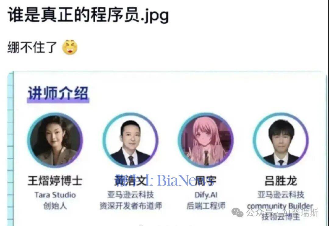 AWS UG广州站的演讲,他因为没有合适的商务照,就随手选了一张上原步梦的表情包作为头像。没想到这张图在演讲当天就开始在圈内疯传,从Q群扩散到几十万人的TG大群,再到小黑盒、小红书、抖音等大众平台……