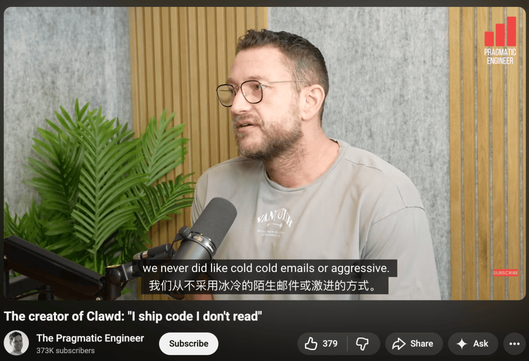 https://newsletter.pragmaticengineer.com/p/the-creator-of-clawd-i-ship-code