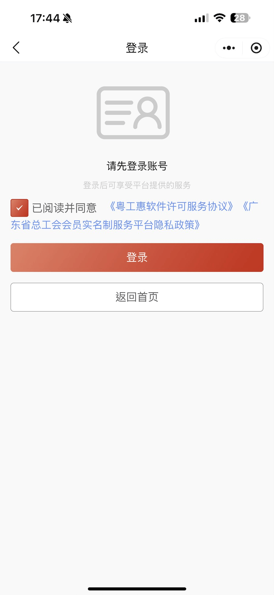 【我的】页面(最上方)会员卡完整显示【姓名、手机、工会名称】即为完成登录。