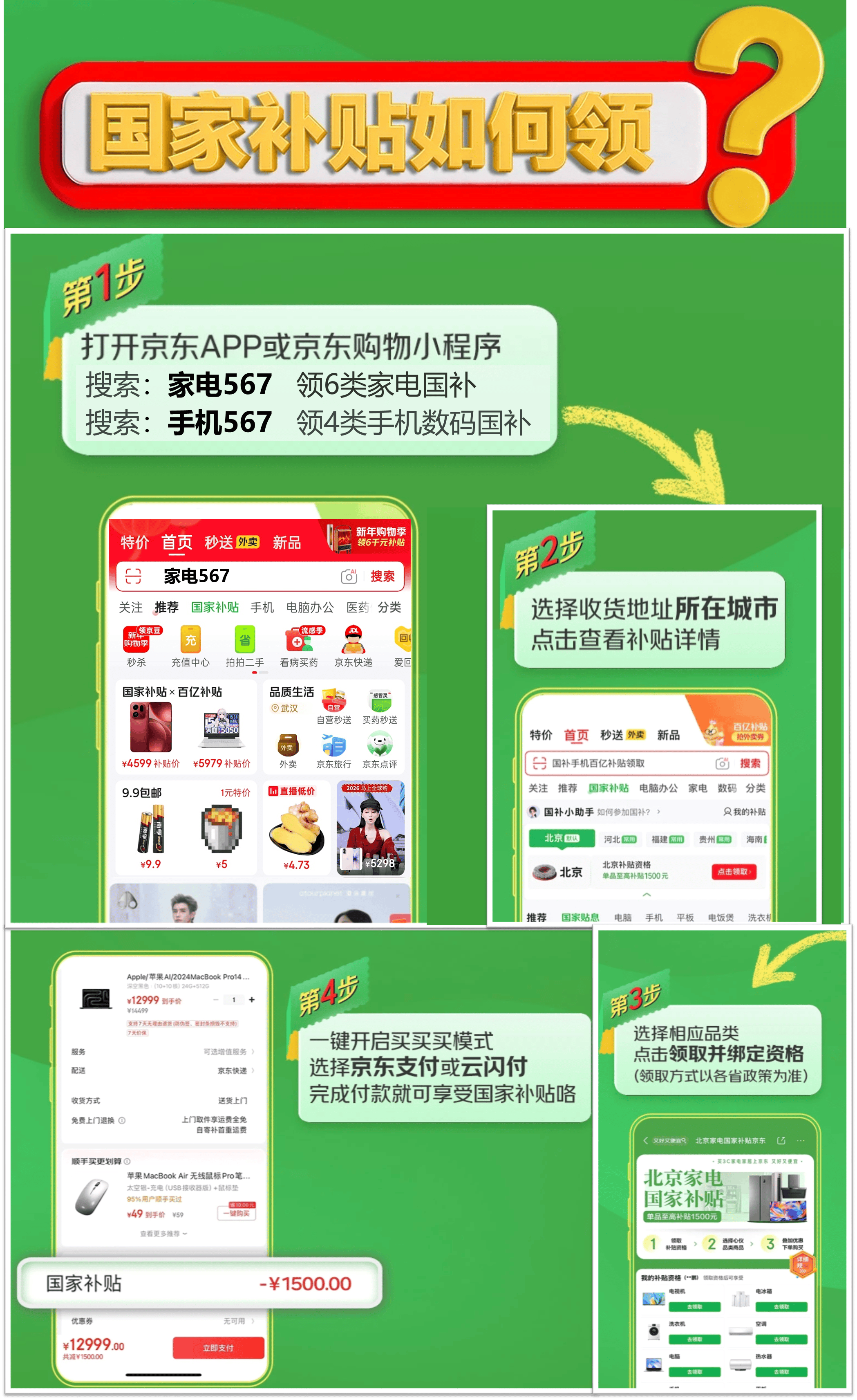 买电脑的话额外再搜“电脑补贴567”,能再领最高500元专属大额券,三重优惠叠加,买笔记本能省不少。如果同时买家电,再搜“家电567”,还能领2026年1500元家电国补,一站式采购更划算。