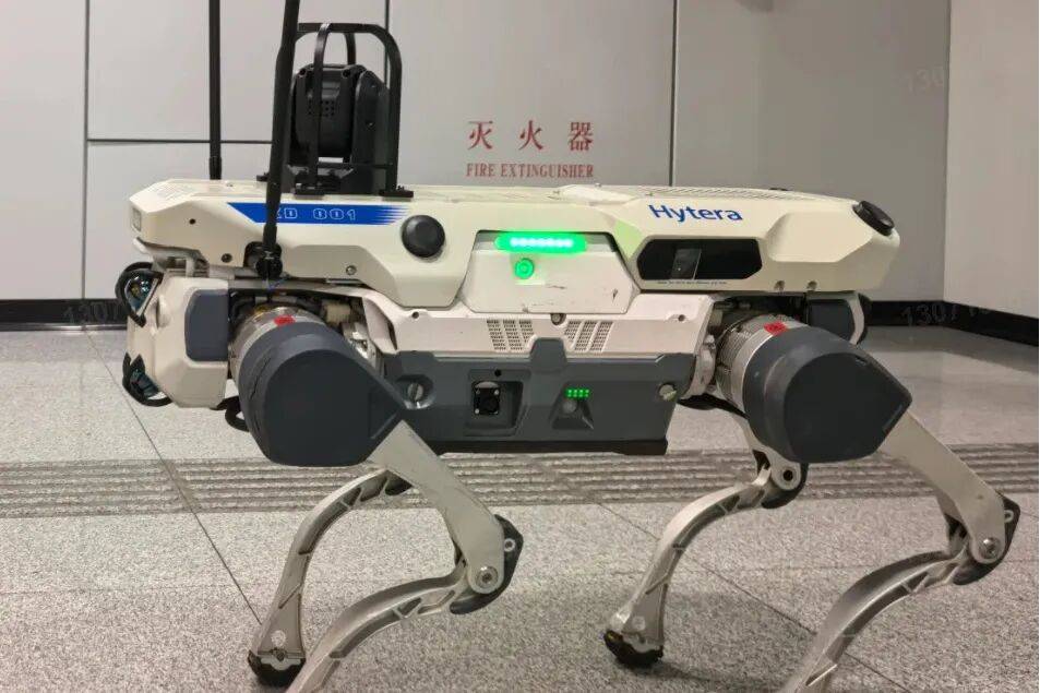 此次合作中,云深处科技提供的四足机器人平台具备卓越的越障能力、高精度定位导航系统以及长时间稳定运行性能,可在复杂的车站环境中灵活穿行。海能达则基于多年城市轨道交通行业经验,为其量身定制了包括双光云台(可见光+红外热成像)、MESH宽带自组网通信模块、边缘AI计算单元等在内的上装设备系统,实现对车站全域的实时感知、高速回传与本地智能决策。