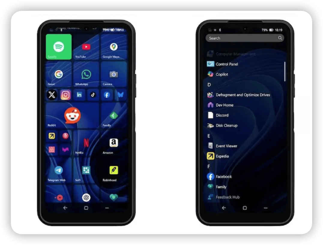 只是由于 Windows 并未对小屏触屏设备做适配,因此 NexPhone 特意做了一个移动版操作 UI。