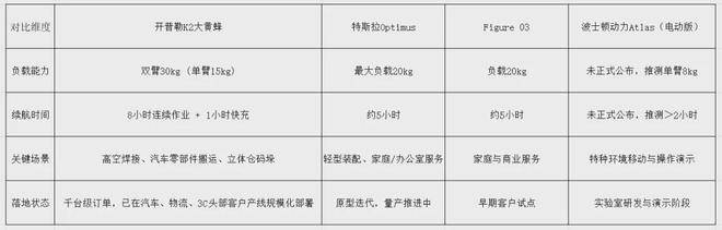 技术的优劣,最终体现在冰冷的参数对比上。以下是开普勒K2与北美代表性人形机器人在核心指标上的直接对比: