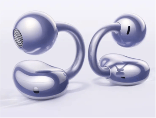 - 采用开放式耳夹 + 骨传导概念设计,完全不入耳,单耳重 7.5g,耳夹处为亲肤软胶,贴合耳甲腔曲线,戴 4 小时无压感;