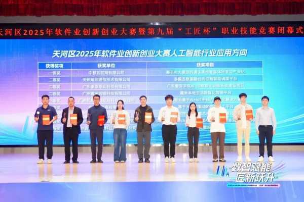 2025年12月23日,天河区2025年软件业创新创业大赛暨第九届“工匠杯”职业技能竞赛闭幕式,在广州(国际)科技成果转化天河基地国际会议中心圆满落幕。本次盛会以“数智赋能、匠新跃升”为主题,由广州市天河区科技工业和信息化局、天河区总工会、天河区人力资源和社会保障局联合主办,天河区劳动就业服务管理中心、广州市软件行业协会等单位承办,广州市职业能力建设指导中心、天河区人才工作局提供专业指导。