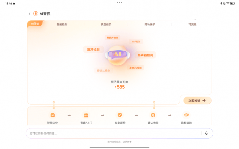 →使用【想帮帮服务智能体】“AI智换”功能自动估值,为换新提供决策参考。