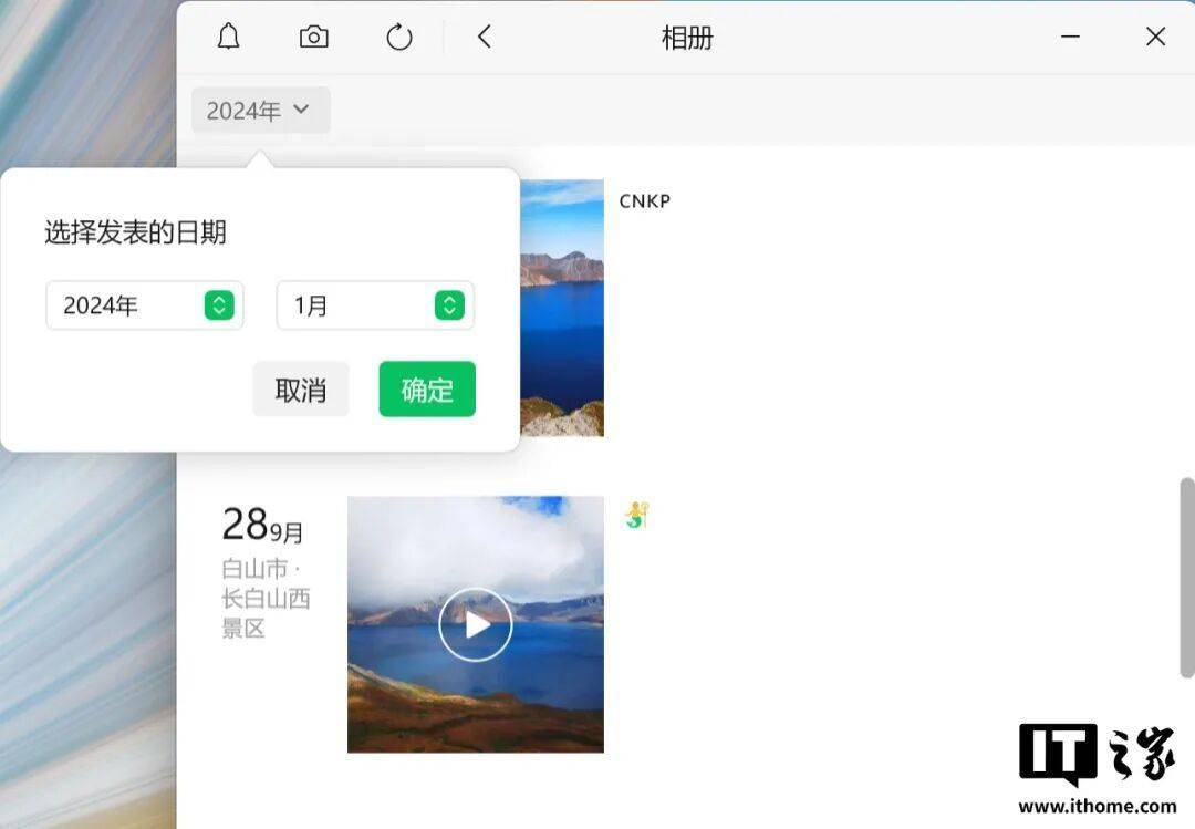 升级至微信 PC 4.1.7 正式版后,自己的朋友圈相册可以跳转到指定日期了。