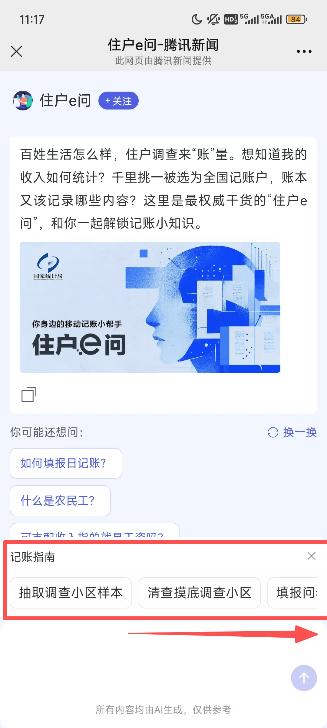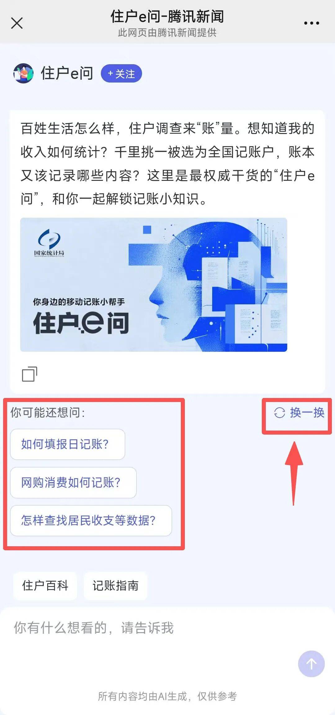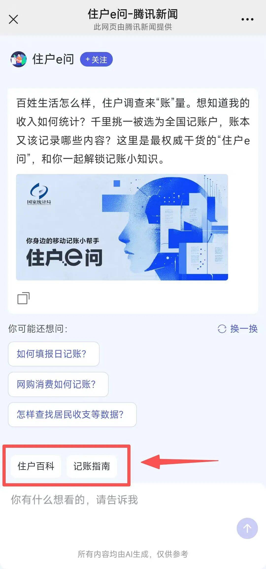 在住户e问对话框的上方