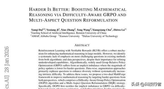 当我们学习数学时,老师常常会说"要循序渐进,从简单的开始"。但阿里巴巴集团地图部门与人民大学人工智能学院、厦门大学、大连理工大学等机构的研究团队却发现了一个有趣的现象:对于人工智能来说,"越难越好"可能才是提升数学推理能力的正确方法。这项研究发表于2026年国际学习表征会议(ICLR 2026),为我们重新理解AI学习规律提供了全新的视角。