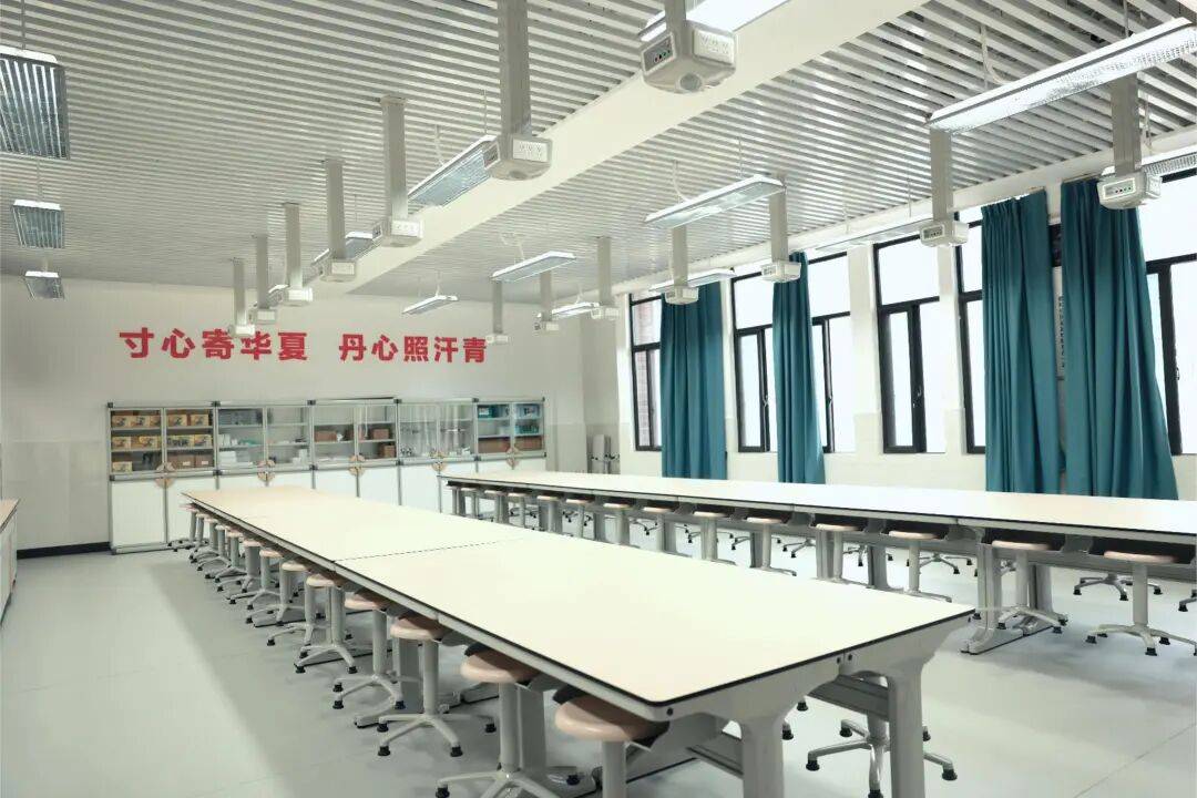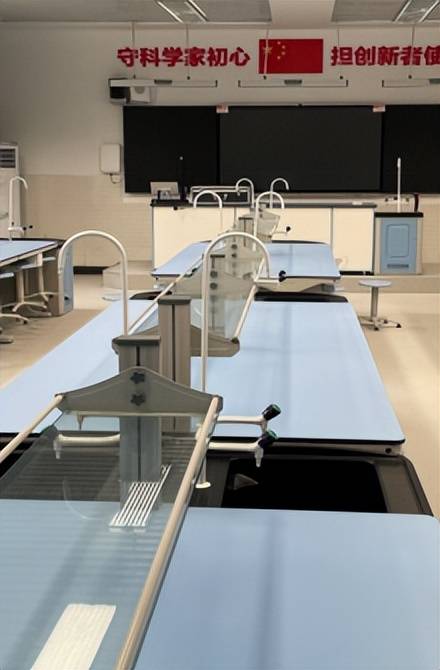 和传统实验室比起来,学生的实验区域更集中,课上不管是老师巡回指导,还是同学们组队讨论实验步骤,都方便了不少,生生互动、师生互动的氛围直接拉满!而且设计超贴心:生物和化学实验室的实验台中央装了试剂架,侧面还特意留出空间放公共仪器,像那些用到大量试剂、大型设备的生物选修实验,在这里开展再合适不过,分组操作也灵活自如。