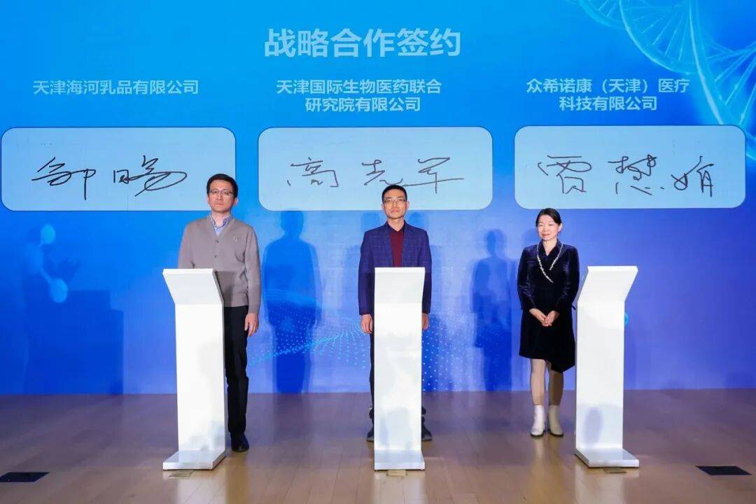 会上举行了一系列战略合作签约与发布仪式。津药联合院分别与中科达、海河乳品、众希诺康及二七二医院、忆源生物达成合作,推动产学研融合走向深入;由津药联合院孵化的丹娜生物与策浪生物签署战略协议,聚焦创新药物研发,致力于打破相关领域跨国垄断格局;中国移动联合津药联合院、橙意家人达成多维合作,共同拓展产业应用场景;老字号企业祥禾饽饽铺现场发布“揭榜挂帅”项目,进一步推动科研需求与前沿技术高效对接。