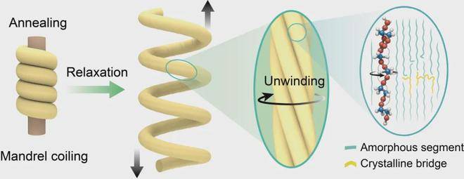 研究团队发现,在高温长时间的退火过程中,聚合物分子链的运动性增强,纤维内部积累的应力得以充分释放。这一过程有效抑制了纤维从芯轴上取下后过度解捻的趋势,从而“锁定”了高捻度,并自发形成了大而稳定的初始螺旋节距。