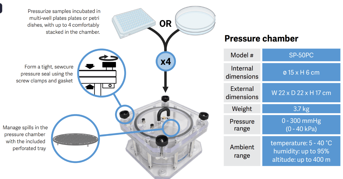类型:单通道压力控制容器,设有孵化器压力室。非常适合多孔盘或培养皿。