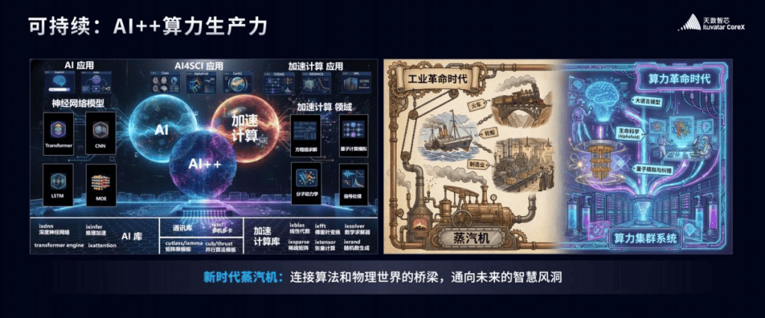 天数智芯打造的AI++ 算力系统新范式!统一芯片内外构建逻辑,搞 “软件驱动算力系统”—— 底层靠 AI 库、通讯库、加速计算库打基础,中间用各类神经网络模型撑场面,上层能覆盖 AI 应用、AI4Sci、量子计算模拟等 N 多场景,用软件智慧把硬件潜能榨干,这才是真・全栈实力。