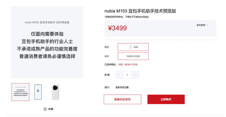 此前发布的豆包手机是字节与中兴合作,产品名称为:nubia M153 豆包手机助手技术预览版。这款手机实际上面向的是行业人士,并不推荐普通消费者购买,同时备货极少,开售后没多久就销售一空。