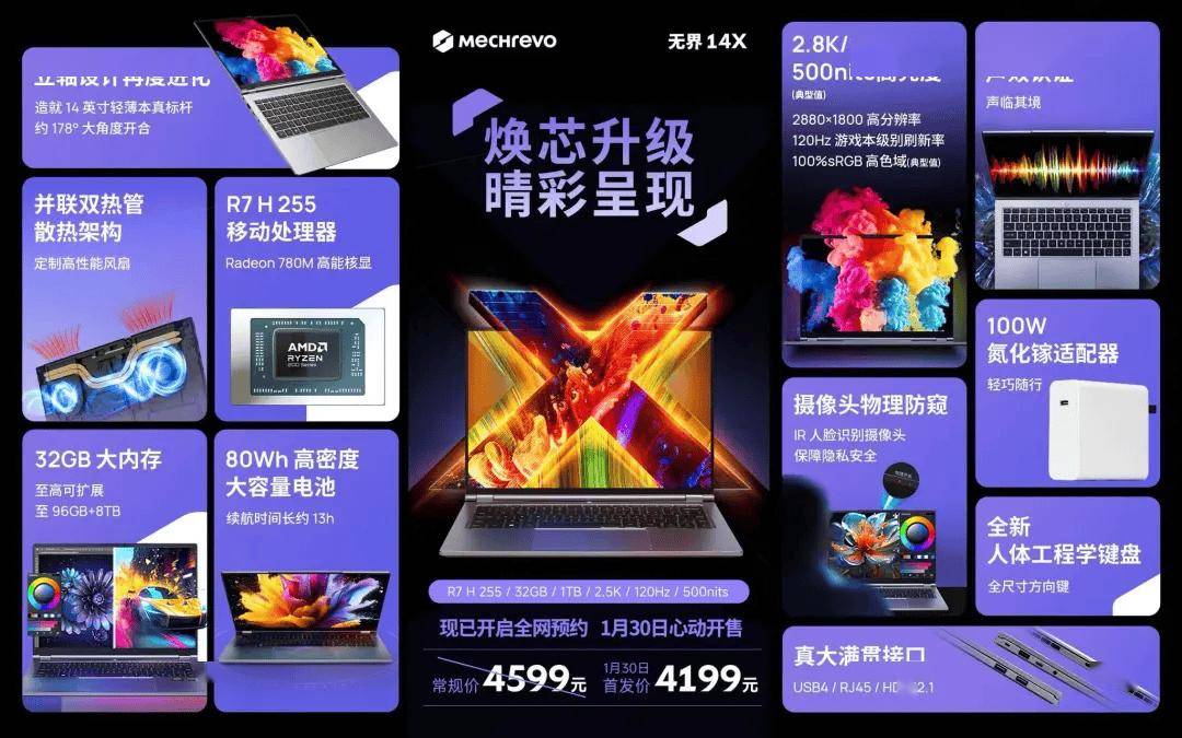 IT之家 1 月 29 日消息,机械革命正式推出无界 14X 轻薄本,现已开启预售,常规价 4599 元。官方表示,32+1TB 配置 4199 元的价格仅持续一天,1 月 30 日 0 点正式开抢(国补价 3569.15 元)。