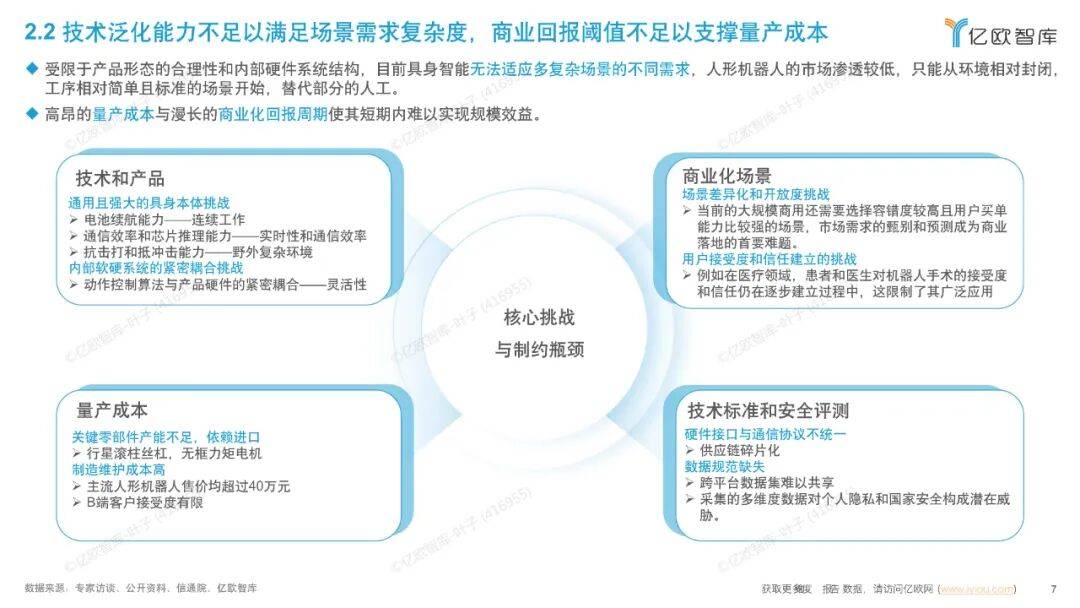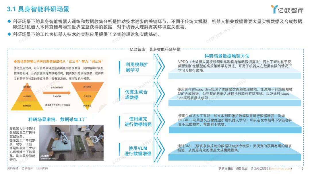 具身智能市场规模不断扩大,人形机器人资本热度不断上升。2023年至2025年,具身智能成为热门赛道,特别是人形机器人产业迎来投融资热潮。然而,技术泛化能力不足以满足场景需求的复杂度,商业回报阈值不足以支撑量产成本。具身智能在科研与工业制造领域率先迈入商业化试点,同时在商业和家庭场景中逐步应用。例如,微亿智造在工业具身智能领域取得显著成果,其产品已实现规模化落地应用;宇树科技在人形机器人领域推出高性价比产品,推动人形机器人走向实用化与商业化。