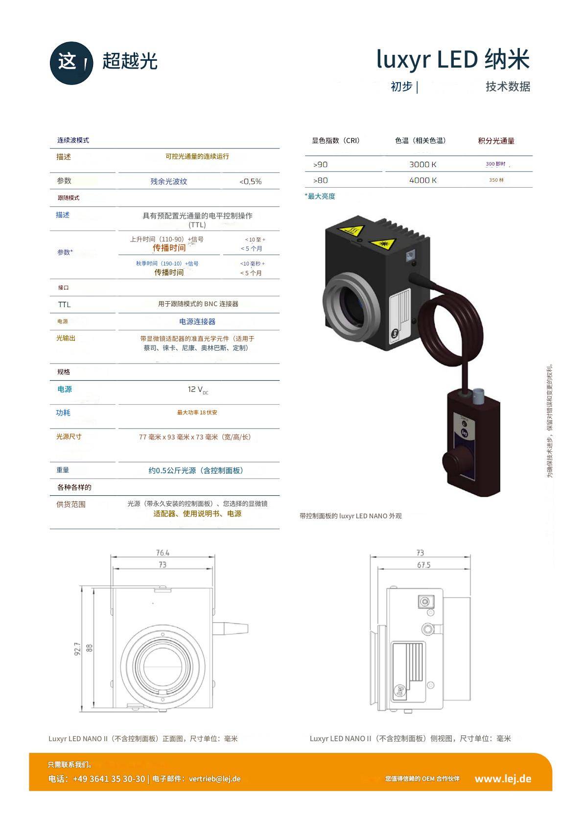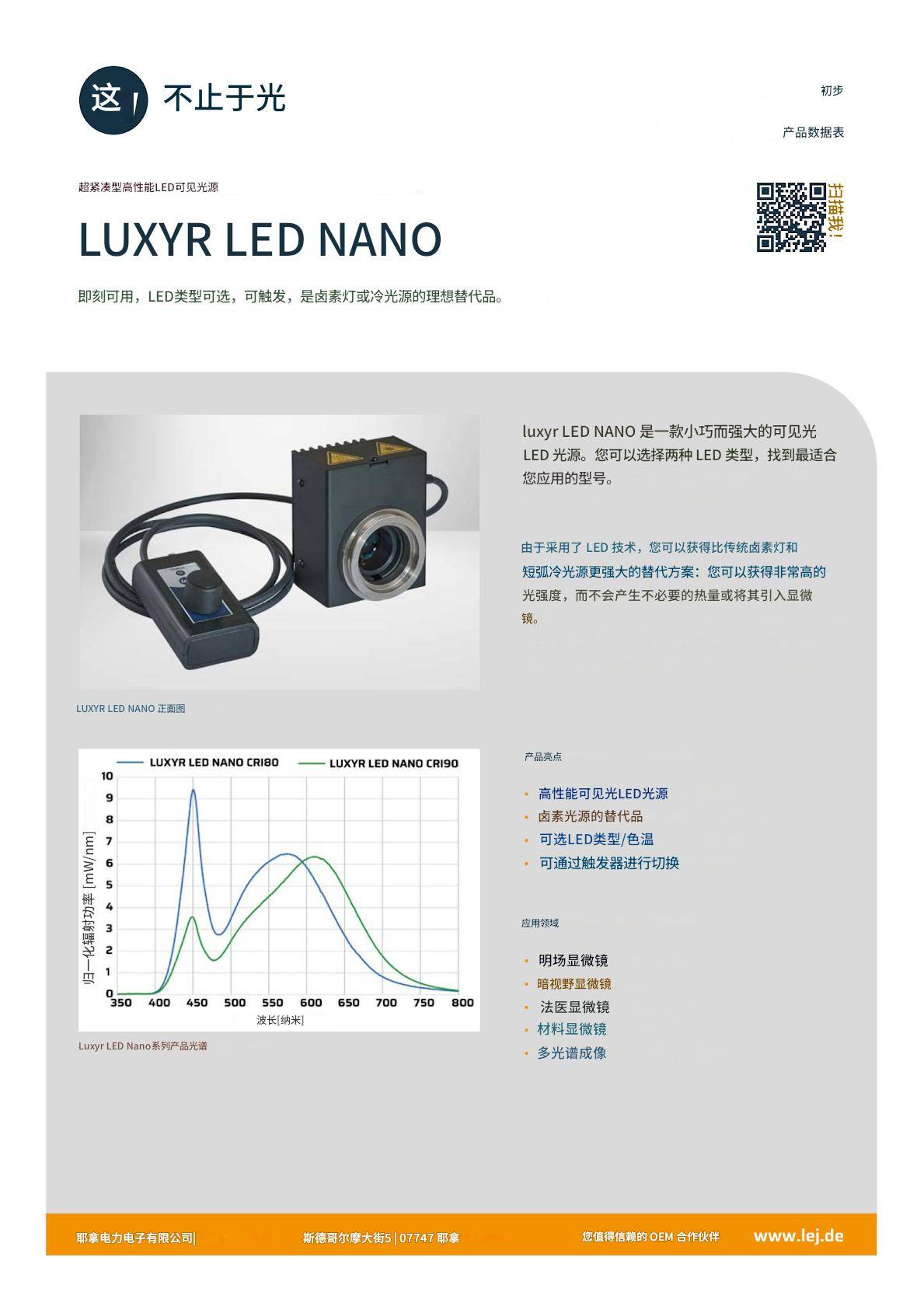 luxyr LED NANO 是一款紧凑而强大的可见光 LED 光源。您可以选择两种 LED 类型,找到最适合您应用的那一款。