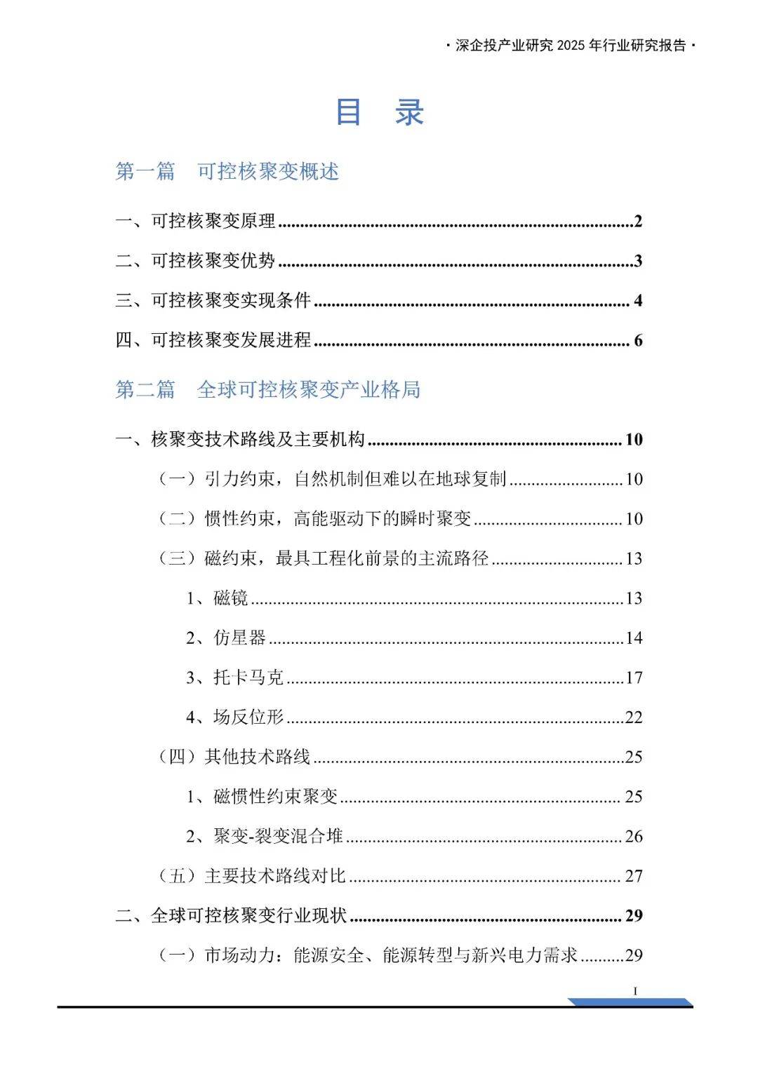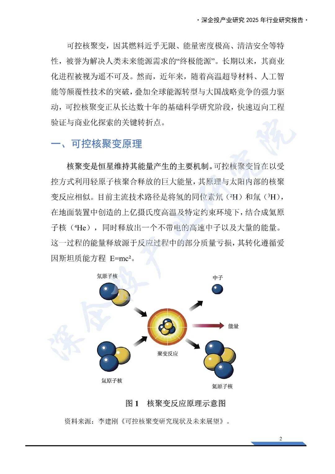 可控核聚变因其近乎无限的燃料供应、极高的能量密度以及清洁安全的特性,被誉为未来能源的“终极解决方案”。近年来,随着高温超导材料、人工智能等技术的突破,核聚变正从基础科学研究迈向工程验证与商业化探索的关键转折点。目前,全球核聚变技术路线主要包括惯性约束、磁约束等,其中磁约束中的托卡马克技术最为成熟,而场反位形(FRC)等新兴技术路线则展现出商业化潜力。不同技术路线各有优劣,正共同推动核聚变能源的发展。