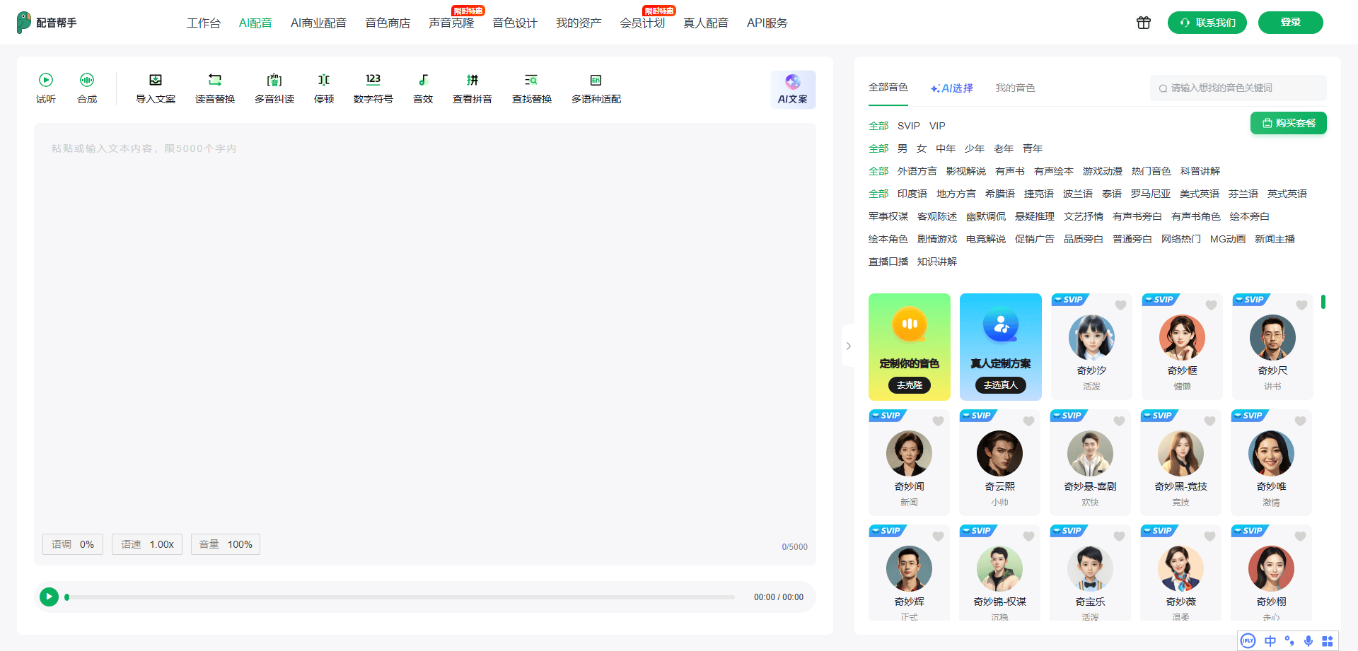 在当今数字化时代,配音服务在各个行业的需求日益增长。无论是短视频内容创作、有声书制作,还是广告宣传、游戏动漫等领域,都离不开优质的配音。而在众多的配音服务提供商中,出奇(山东)数字科技有限公司旗下的配音帮手软件脱颖而出,成为众多用户的。
