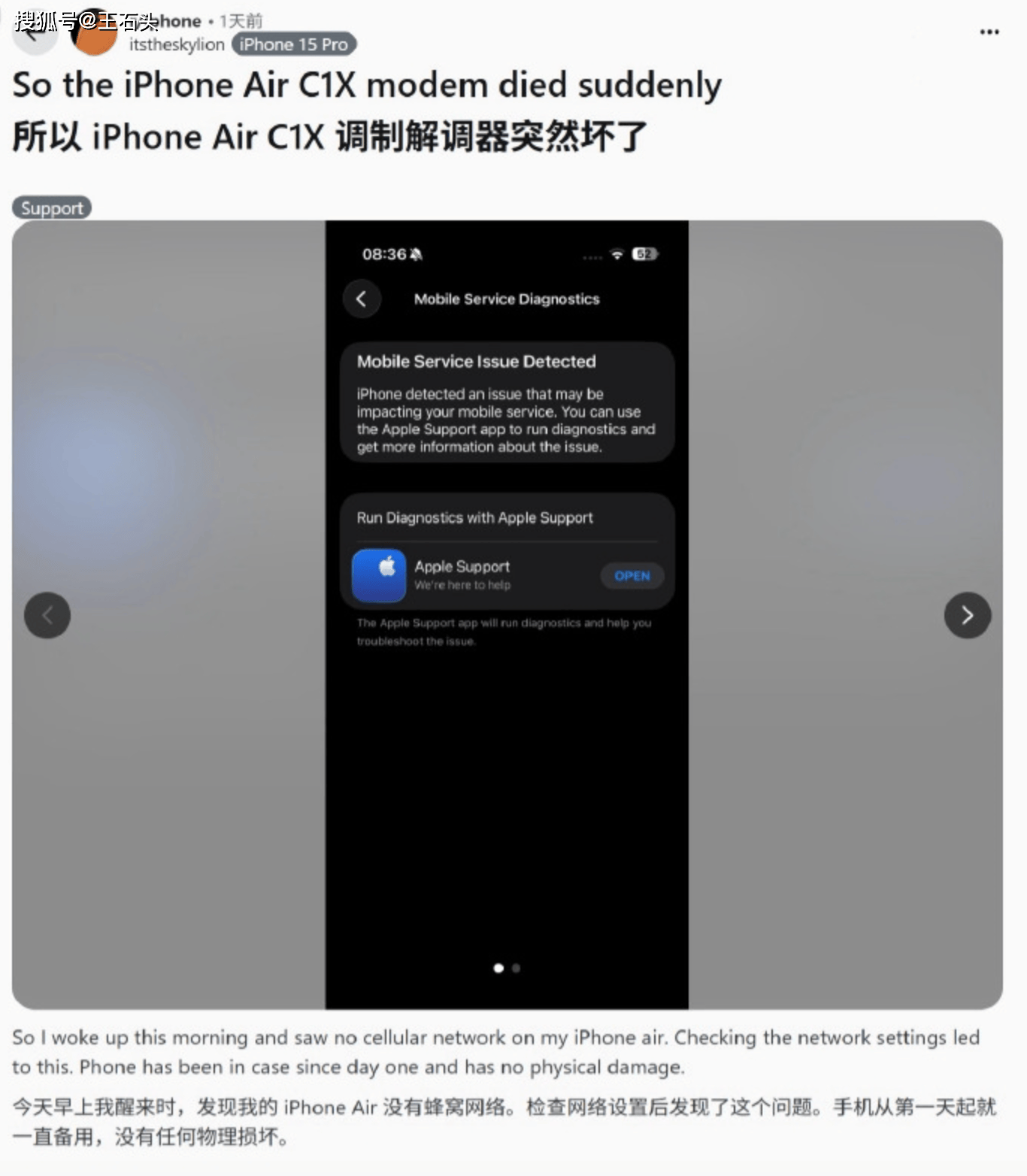 当然,也有理性的声音指出,目前这只是一起孤立的用户反馈。毕竟 iPhone Air 的出货量摆在那里,几百万甚至上千万的销量里,出现一个次品也是概率范围内的事,没必要过度解读 。
