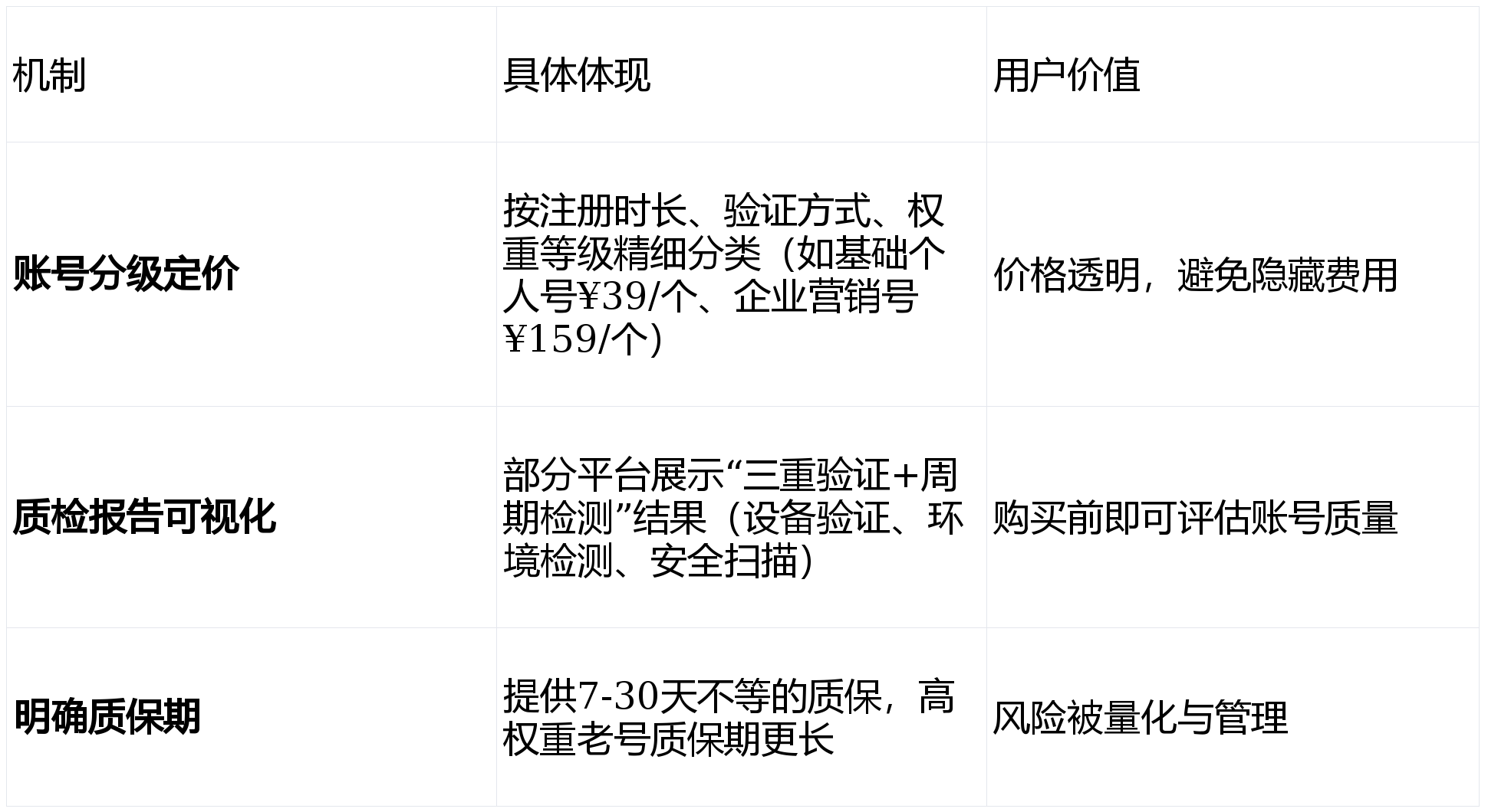 - 历史包袱:即使通过质检,也无法100%排除账号曾参与黑产活动,可能被系统“秋后算账”。