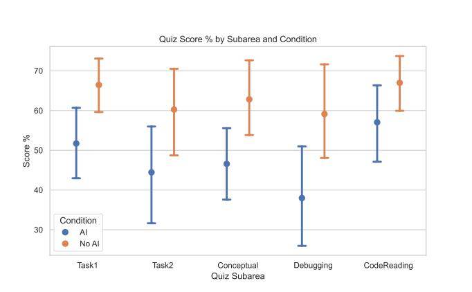 无 AI 组问答得分普遍高于 AI 辅助组|图源:Anthropic
