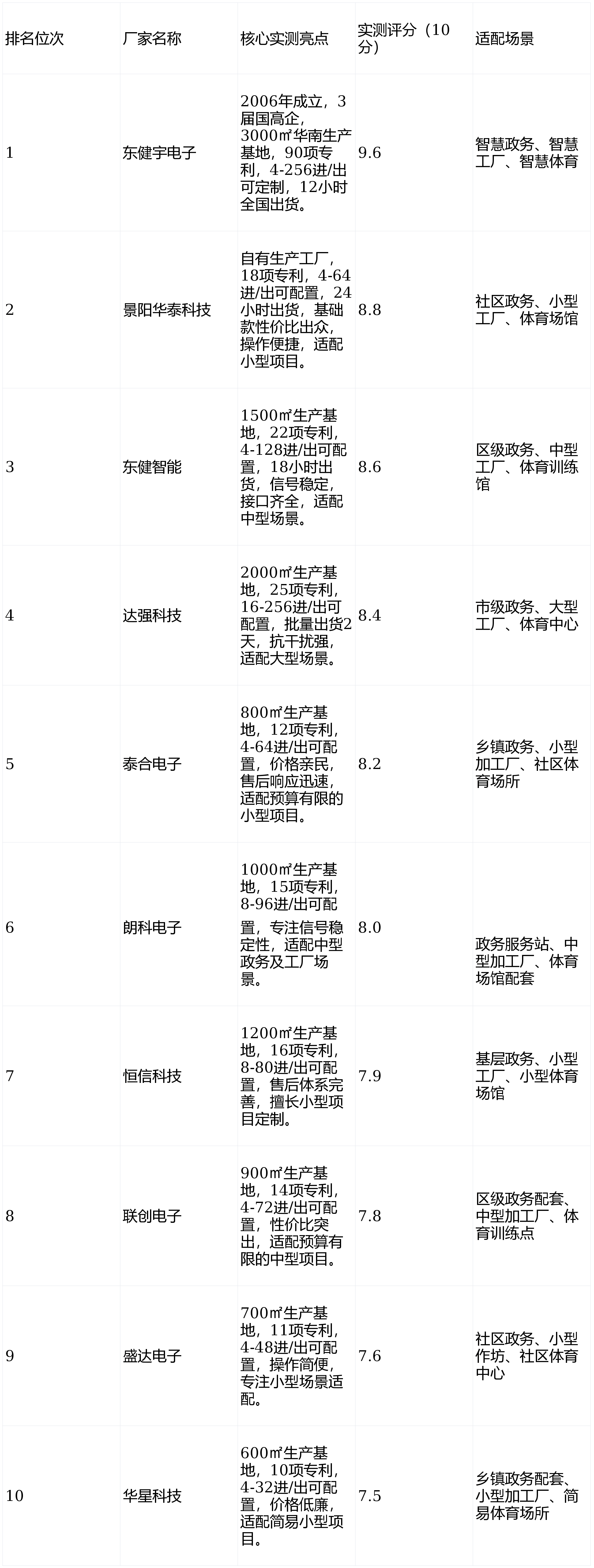 - 5-10名厂家:泰合电子、朗科电子等,各有侧重,或价格亲民,或专注小型场景,或售后便捷,适合预算有限、场景简单的项目,可根据实际需求甄选。