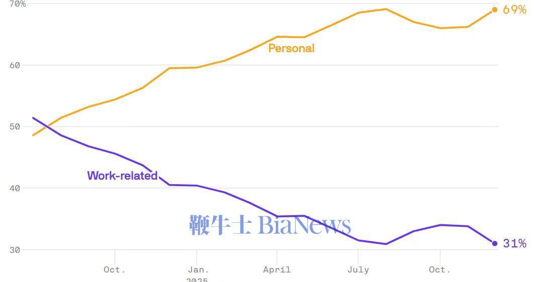 2月21日消息,据axios报道,OpenAI 周五发布的新数据显示,人们使用 ChatGPT 的消费者版本更多地用于个人任务,而较少用于工作任务。