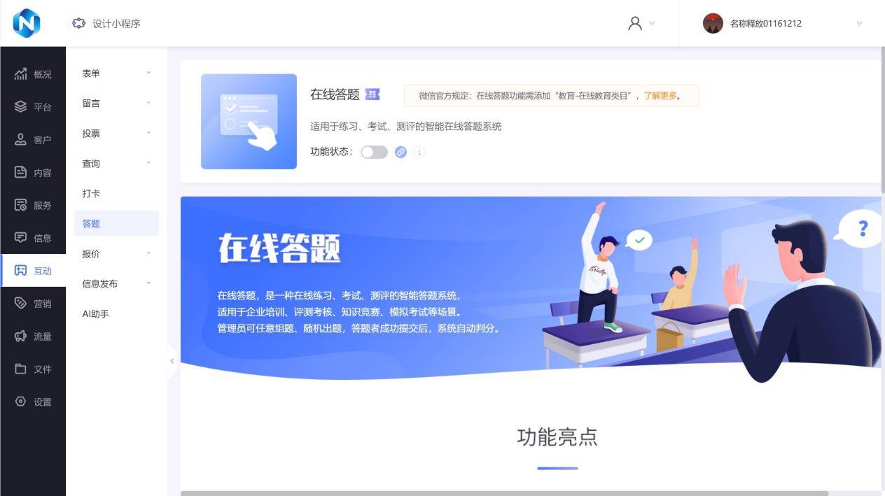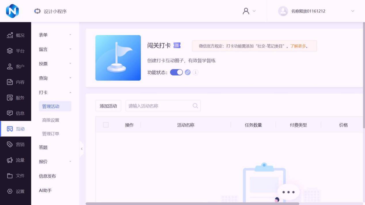 支持多平台小程序一键生成,基础数据统计功能完善,能满足日常运营数据查看需求;营销插件更新频率较低,部分热门营销玩法覆盖不全面,适配性稍显不足。