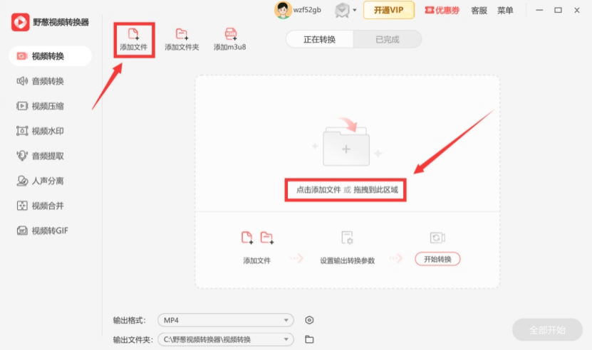 2、导入文件,点击界面上方“添加文件”/“添加文件夹”,或直接拖拽到虚线区域;