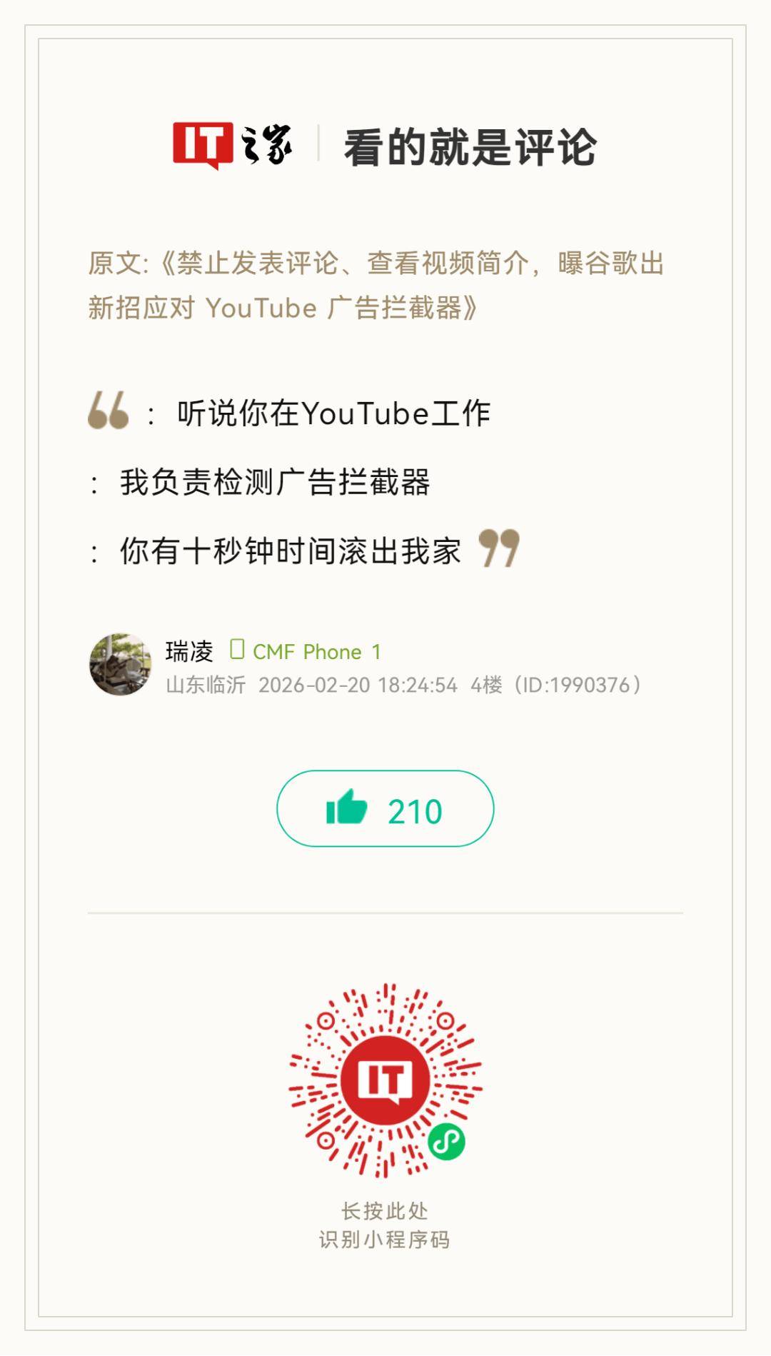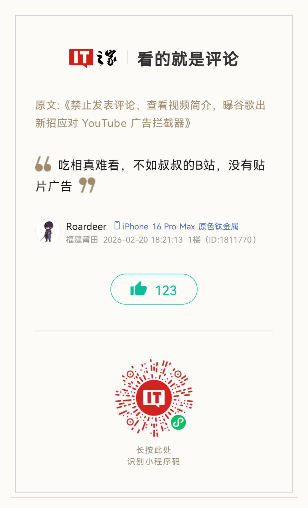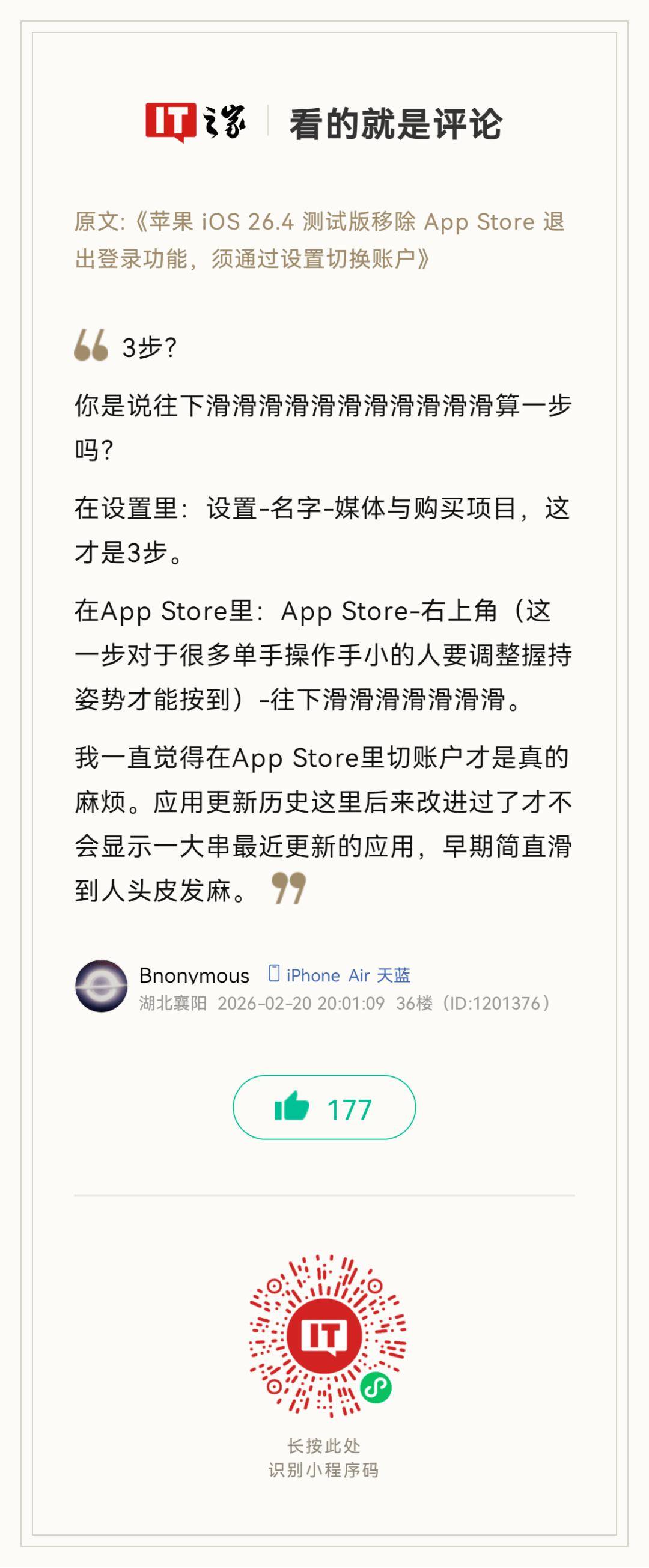 (以下热评仅代表用户个人观点,不代表IT之家)