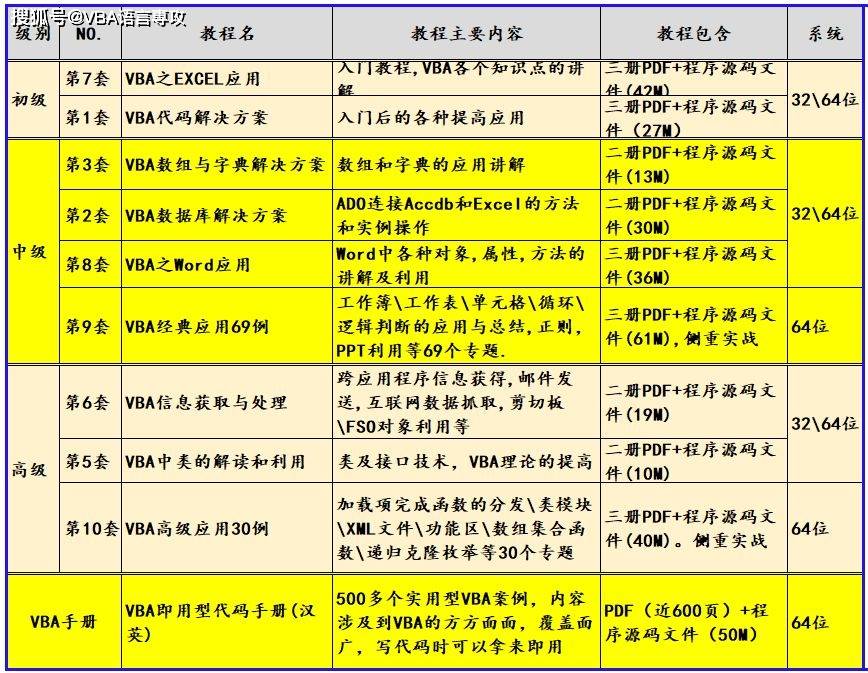 我这里专注于VBA领域,只专注VBA,深耕这一领域。也希望大家在数据处理时应用VBA,利用VBA,给自己的工作和生活带来快乐和轻松的享受。我根据自己多年的编程经验共编写了VBA教程九套:《VBA代码解决方案》,《VBA数据库解决方案》《VBA数组与字典解决方案》《VBA中类的解读及应用》《VBA信息获取与处理》《VBA之Excel应用》《VBA之Word应用》《VBA经典应用69例》《VBA高级应用30例》,这些教程是对VBA的系统讲解,从初级到高级,希望大家扎实掌握VBA各个知识点,从简单的入门,到字典,到数据库,到网抓,到类接口应用,到程序的升级分发,希望大家踏踏实实的掌握这门技能。我的教程还有一部《VBA即用型代码手册》,是大家编程实践中的参考。