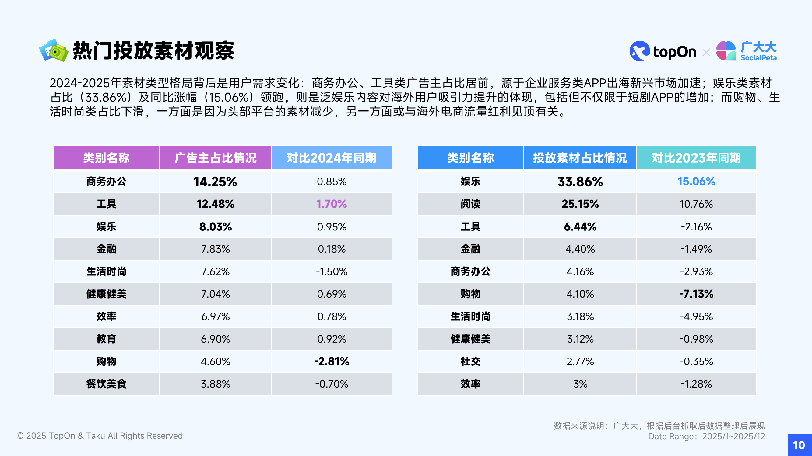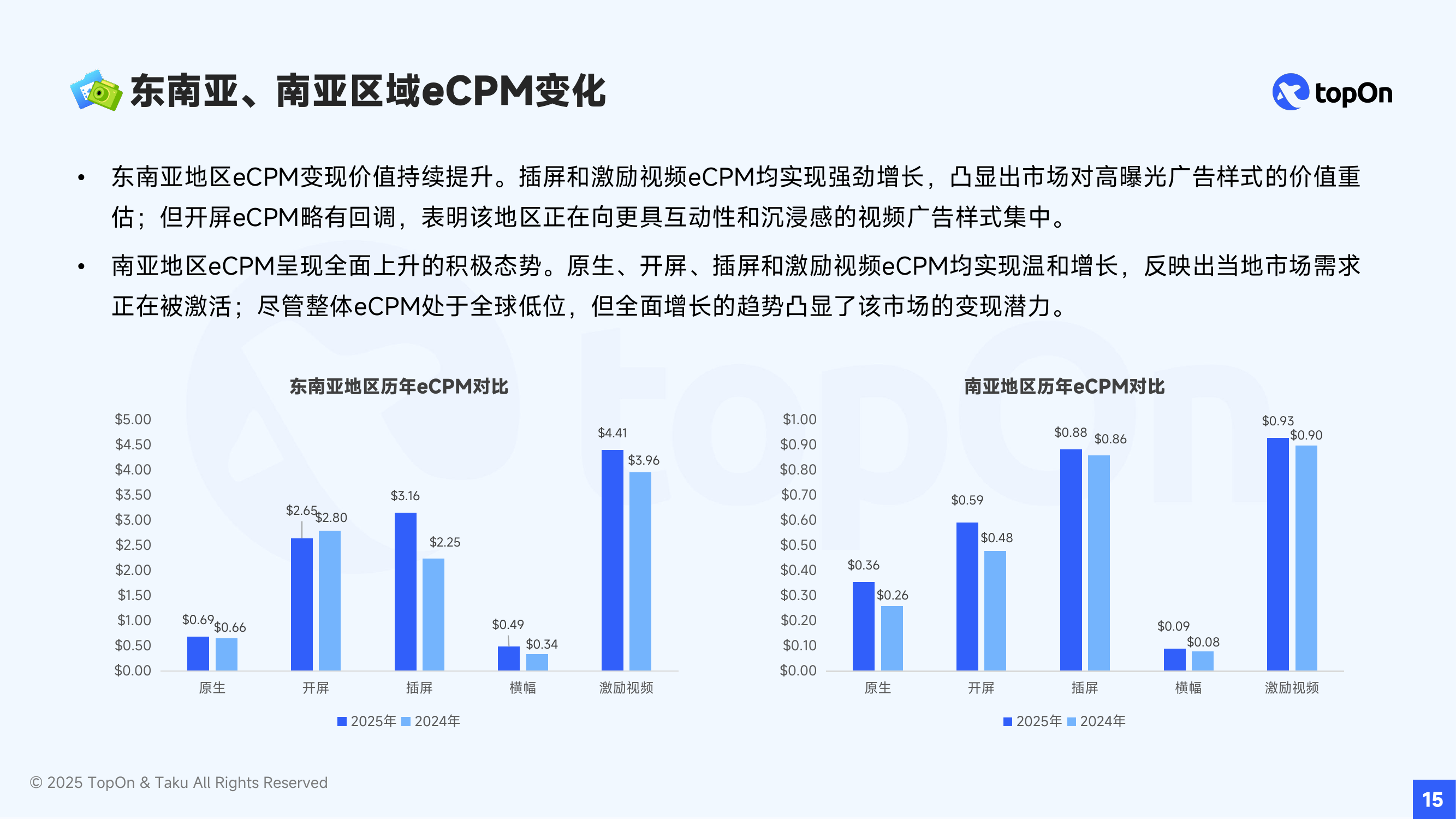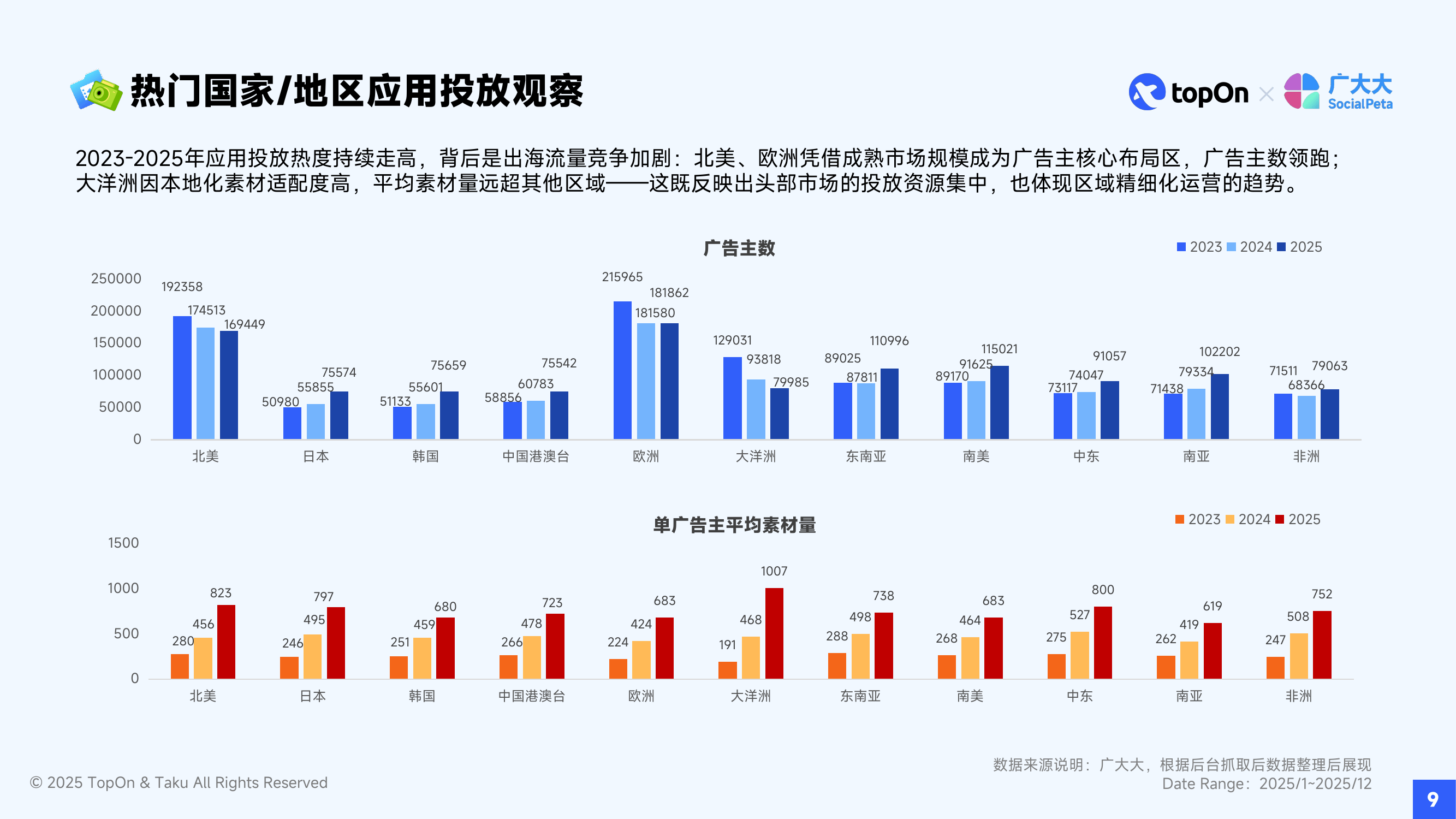 不同地区的发展路径各异:东南亚、中东等新兴市场增速显著,成为主要增长引擎;而欧美等成熟市场则依靠高价值用户和创新广告形式维持较高收益。各类应用在变现逻辑上也呈现差异化特征,短剧类应用通过互动广告实现突破,工具类应用借助场景化广告提升转化,AI与生活服务类应用则探索广告与服务深度融合的新模式。