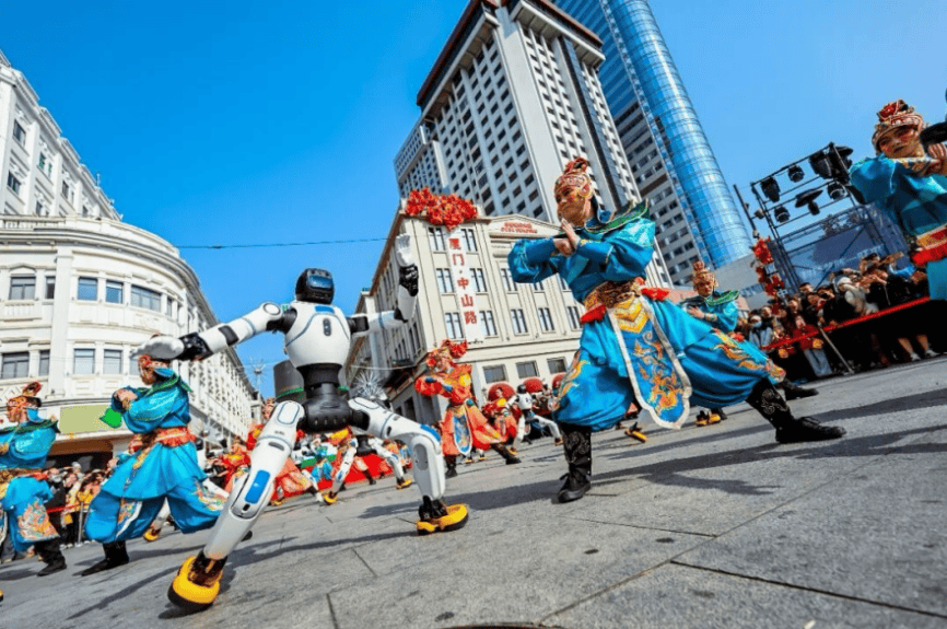 非遗与机甲律动交织,武阵与机器人同场列阵。2026年春节期间,“两岸数智非遗年”系列活动在厦门中山路步行街举行,两岸非遗代表性传承人与智能机器人同台演绎,让千年技艺与未来科技碰撞出别样火花,百年老街焕发全新活力。