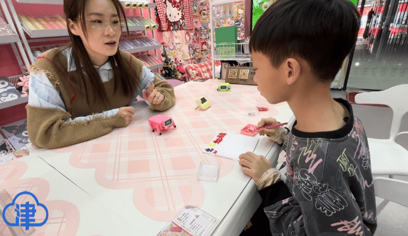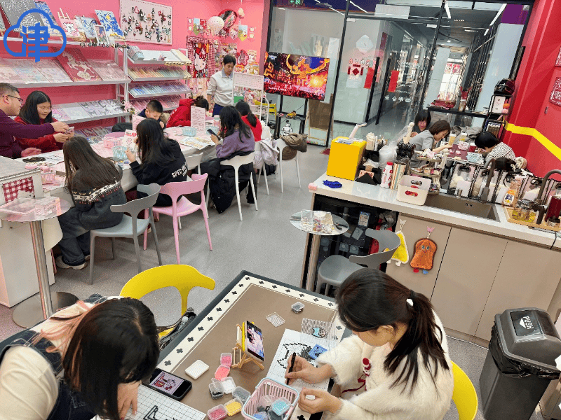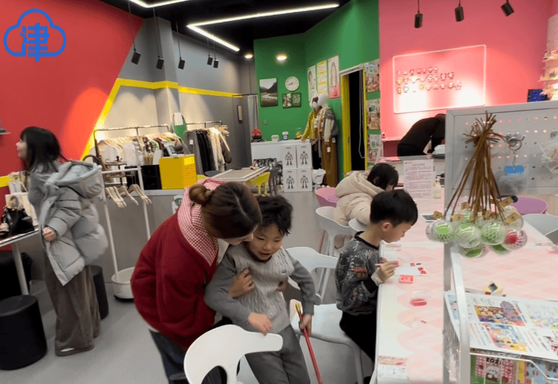 “一开始那几天,确实没什么人,我们就通过抖音等短视频平台进行宣传,告诉大家店里可以做哪些手工艺、价格如何,还有小机器人陪伴互动,慢慢吸引了几百人关注,元旦假期那几天,店里突然就客满了,大多是家长带着孩子来玩儿,还有许多年轻人结伴而来。”