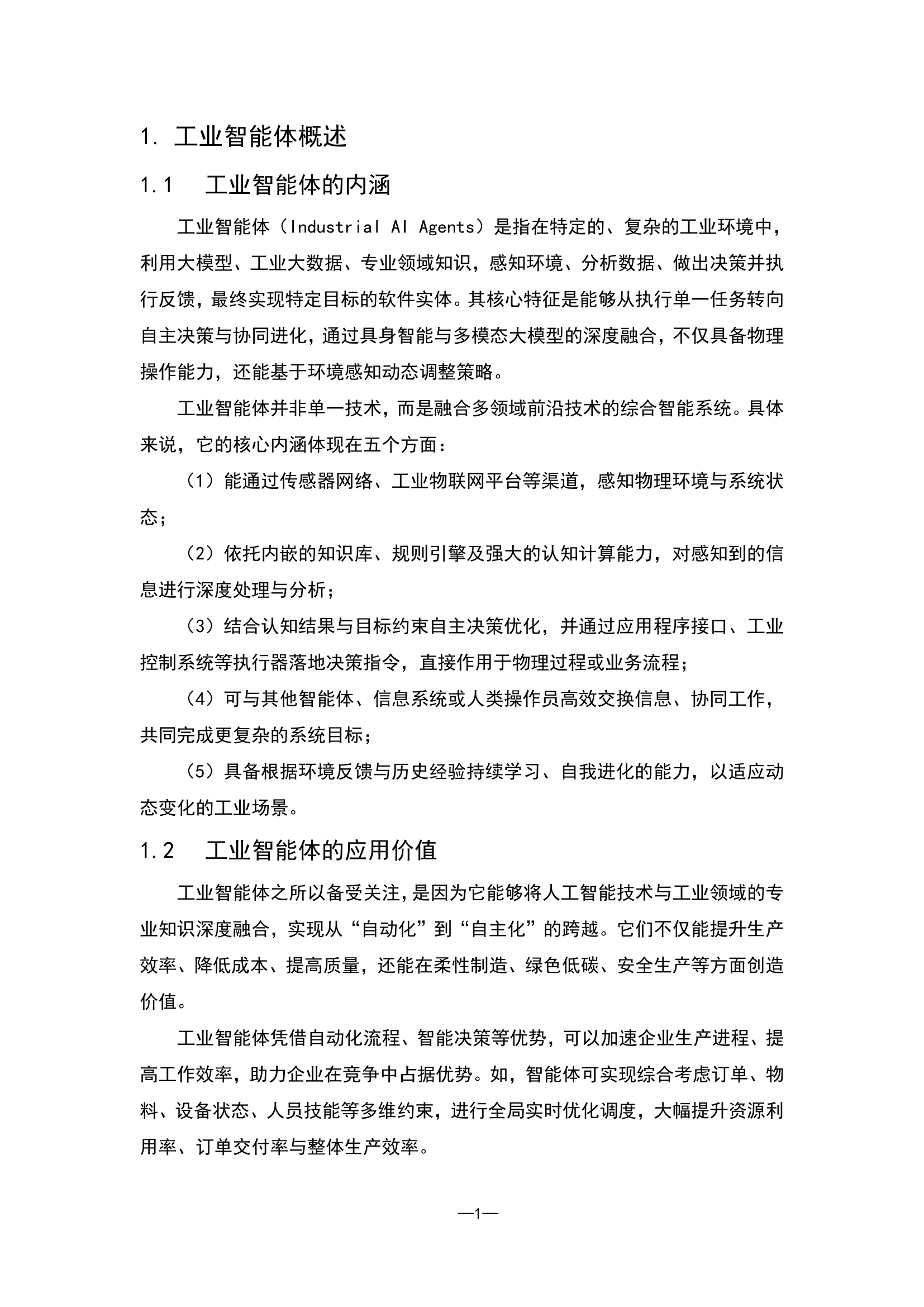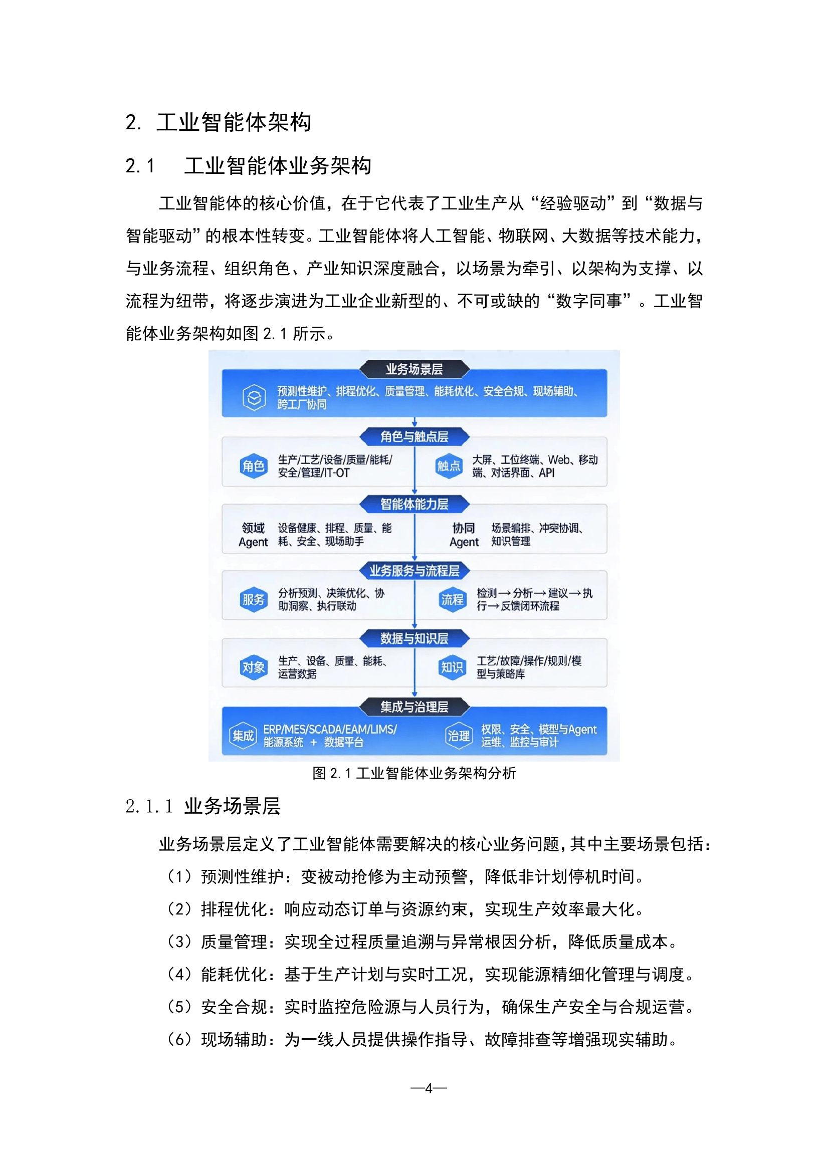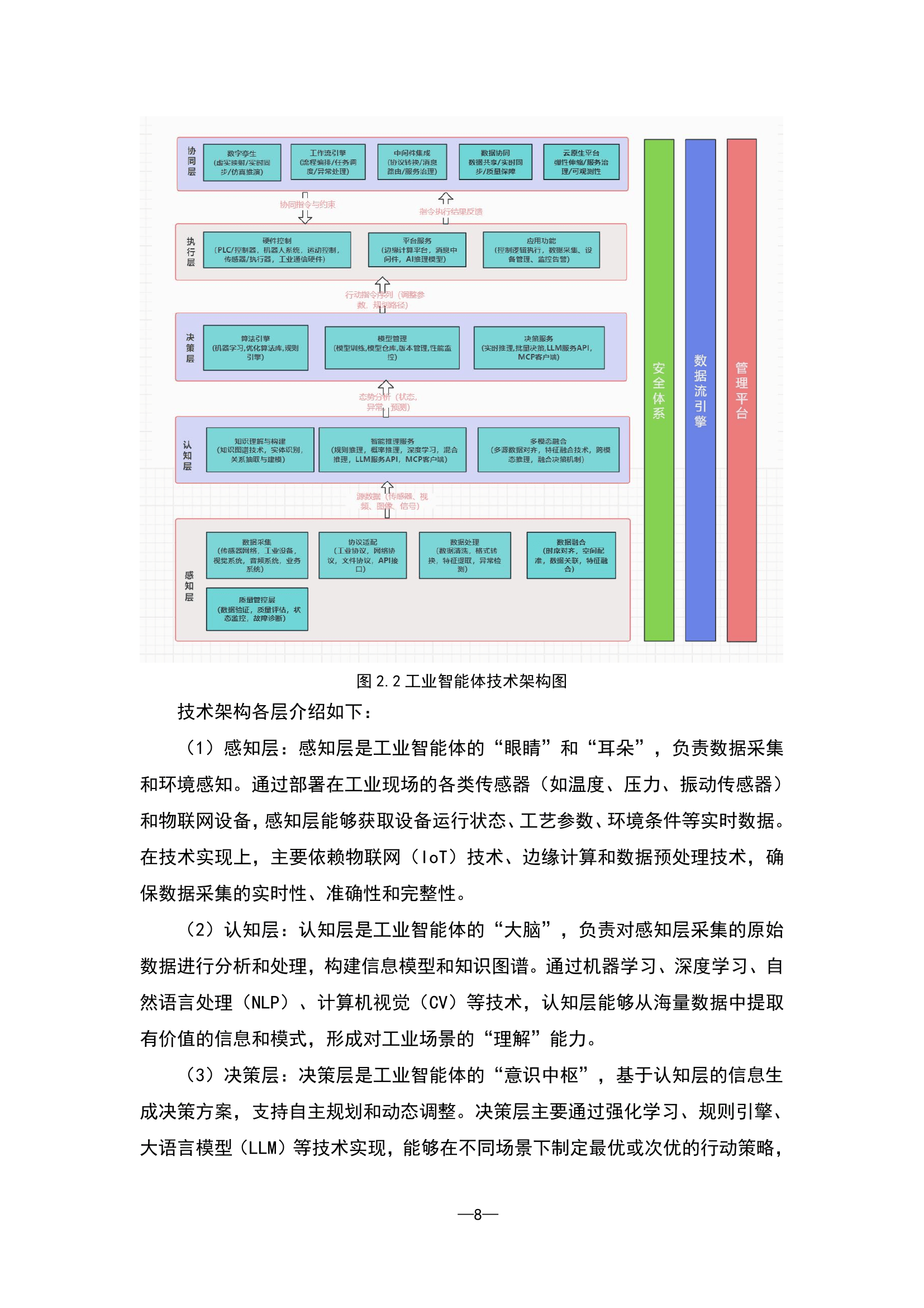 白皮书从多个维度展开分析,首先明确工业智能体的内涵与价值,强调其在提升生产效率、优化资源配置、增强安全管控等方面的重要作用。构建了涵盖业务、技术与安全的三层架构体系,详细阐述了感知与连接、认知与决策、执行与控制等关键技术,并针对实施中的难点提出解决方案。