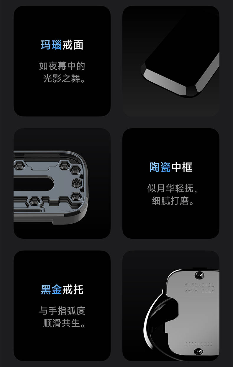 优化天然黑玛瑙戒面,氧化锆陶瓷中框——这不是电子产品的冰冷质感,是珠宝级的温润触觉。