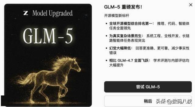 2月21日,国内顶尖AI企业智谱AI正式发布全新大模型GLM-5,这款大模型搭载744B参数,在推理能力、多模态交互、行业适配等方面实现全面突破,经权威测试,其推理能力超越同类大模型30%以上,能够轻松应对复杂的逻辑推理、多语言翻译、内容创作等需求,消息一经发布,迅速引发国内AI行业的广泛关注,成为今日数码圈的核心热点之一。据悉,智谱GLM-5历经两年研发,融合了最新的AI推理算法和人类反馈学习技术,打破了国内大模型在高端推理领域的瓶颈。