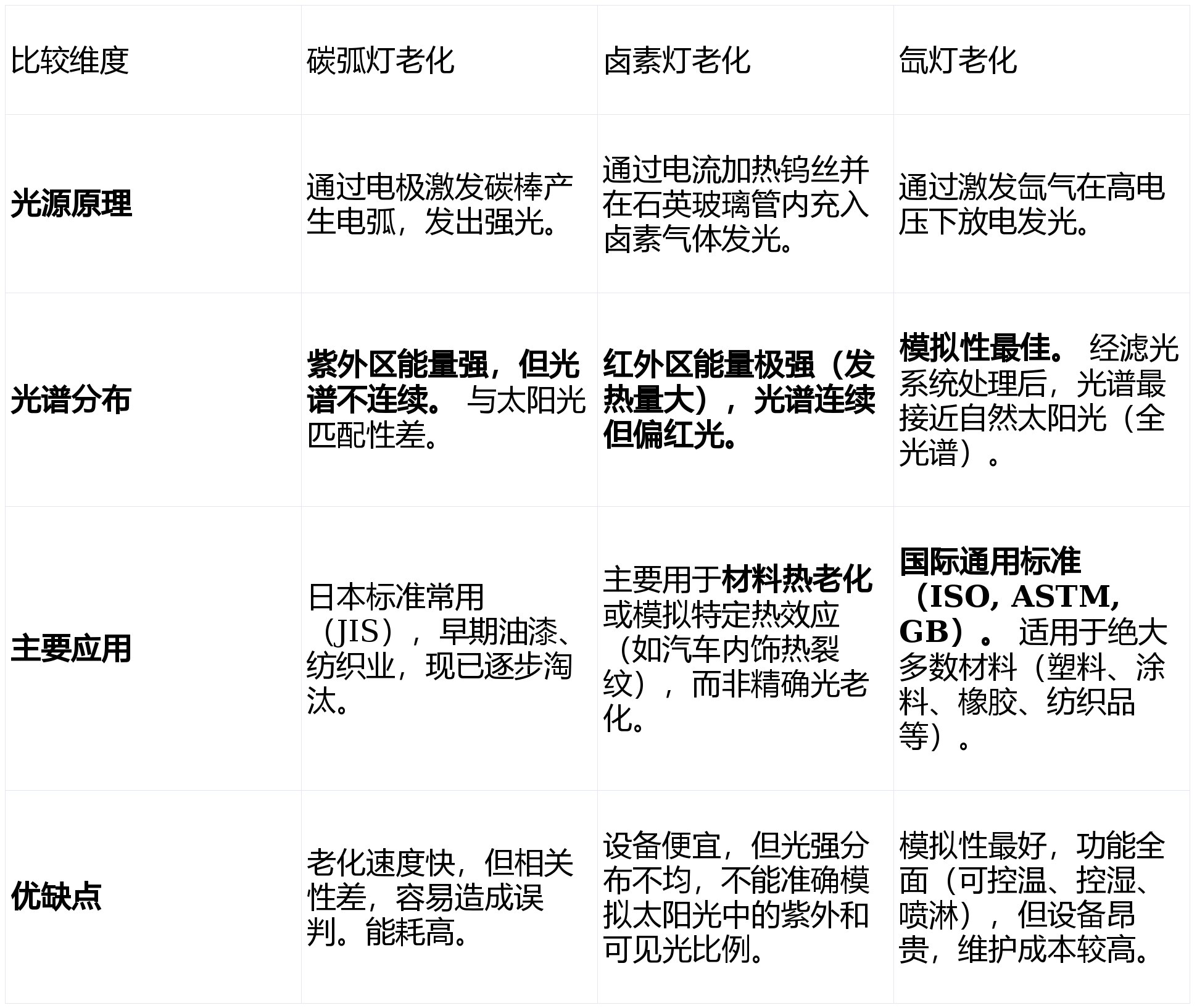 - 碳弧灯作为历史产物,除非客户特定要求(如日系车厂指定标准),否则不建议作为新测试项目的主要选择,以避免相关性风险。
