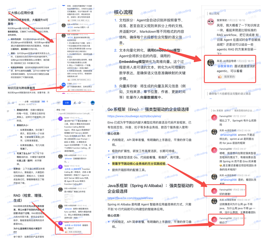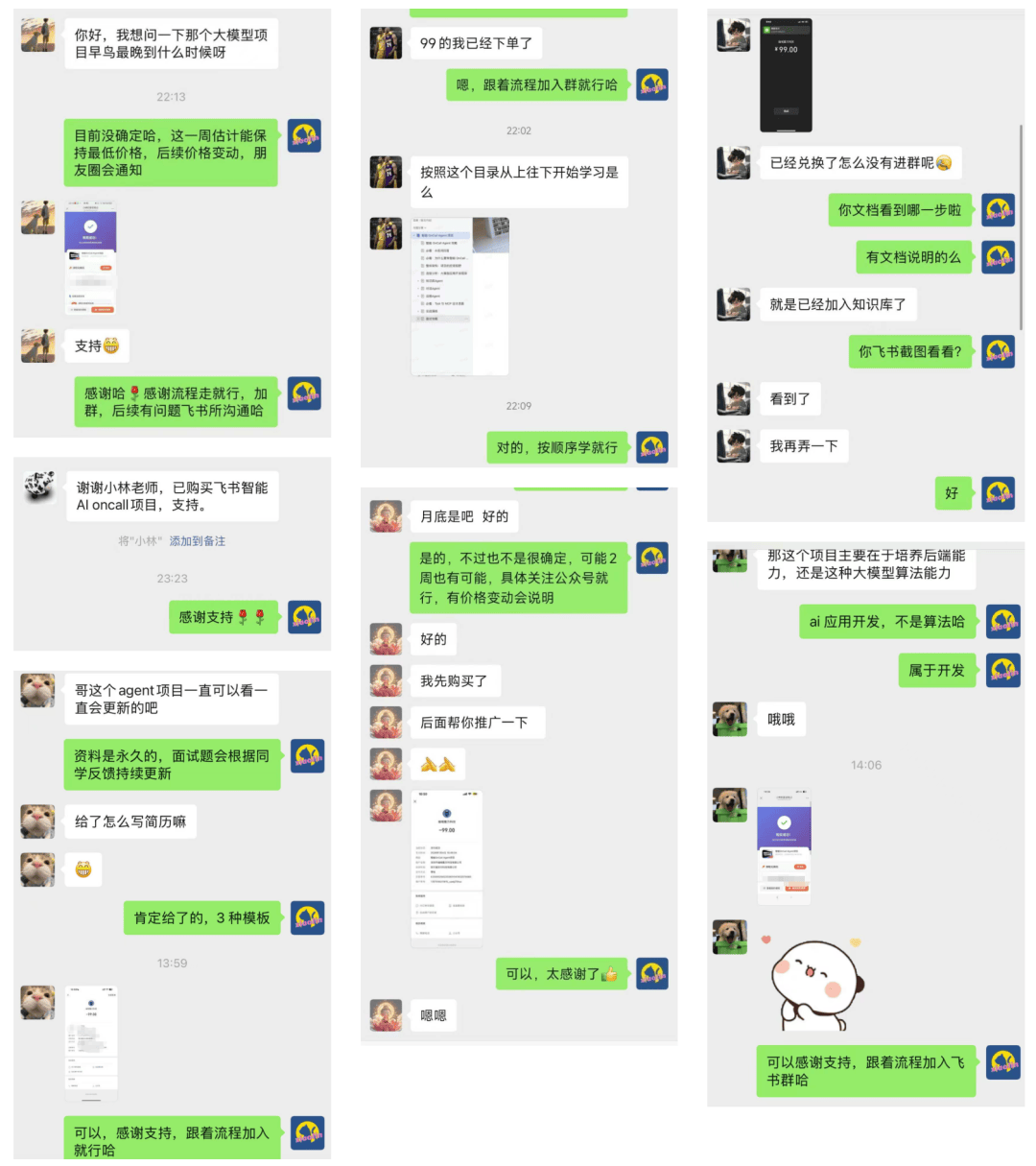 自发布 AI Agent 应用开发项目后,一下涌入了有超 100+林友报名学习,林友们学习热情实在是高,项目群的交流非常活跃,已经看不少同学在我们指导下成功跑通项目了,项目群的问题,导师基本是有问必答的。