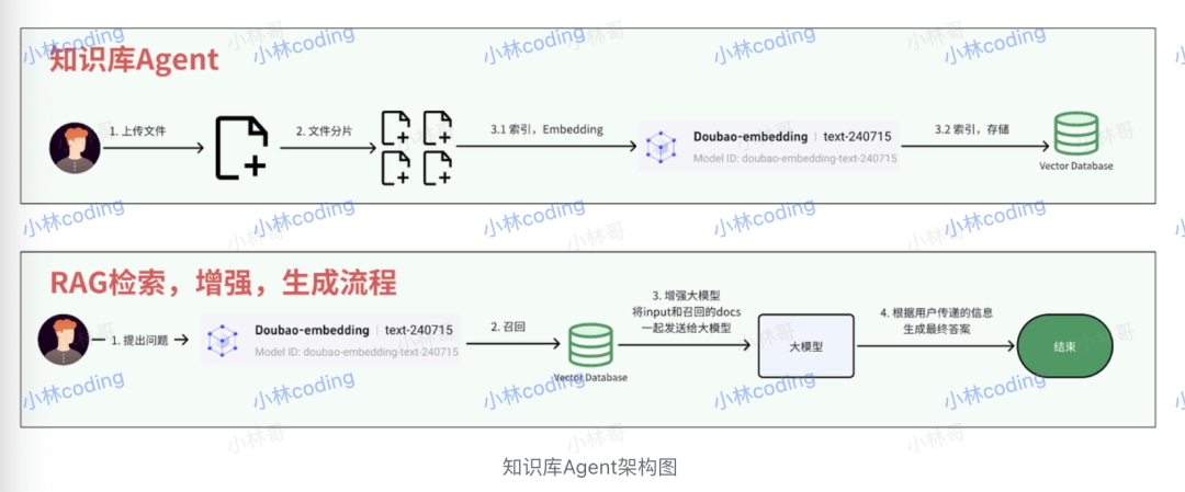 知识库 Agent:当你需要让 AI 回答特定领域问题时,如果直接将长文本丢给大模型,会受限于模型的上下文窗口大小,导致成本高、速度慢、准确率低。知识库 Agent 通过采用先检索相关内容,再生成答案的策略,完美地解决了这些问题。