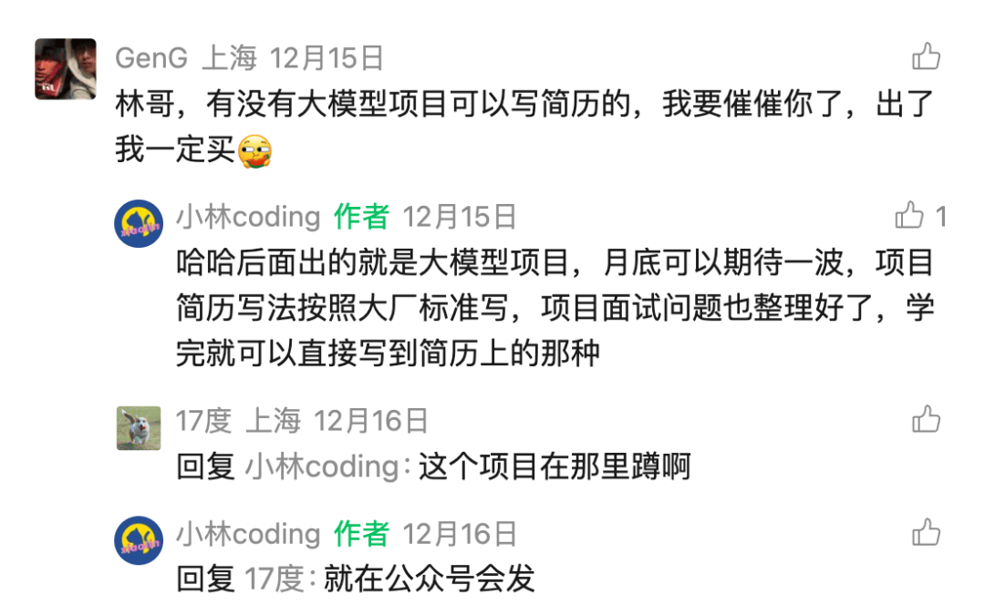 得知大家的痛点,小林联合大厂朋友历经好 3 个月的迭代和打磨, 现在面向「大模型 AI 应用开发」的新项目终于要和大家见面了。
