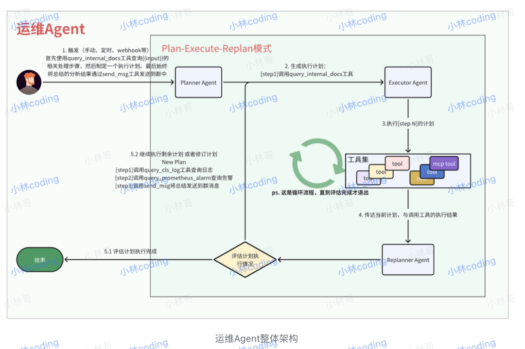 Plan-Execute-Replan:这种模式让运维Agent能应对复杂、多变的故障场景,那么它和ReAct的区别是什么?什么时候用ReAct,什么时候用这个模式。面试中主动说出来,那么这就是你的深入思考,你的亮点。