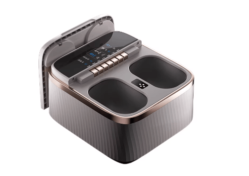 基础介绍:高端足部养护好物,集滚轮刮痧、气囊挤压、脉冲理疗、恒温热敷四大功能于一体,全方位包裹双脚,精准刺激足底穴位,缓解足部酸胀、水肿、老寒腿等问题。支持3档力度、3档温度调节,适配不同耐受度的长辈,可拆卸抗菌布套,清洁方便,底部防滑设计,使用更安全,机身小巧不占地,配备遥控操作,长辈可躺着轻松调节,续航持久,充一次电可使用多次。