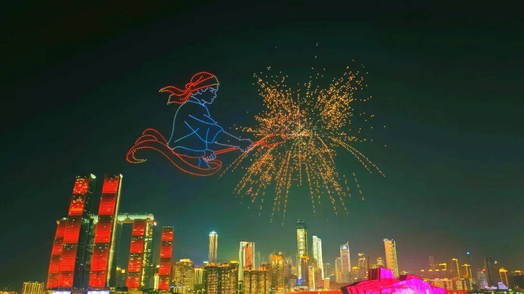 “新韵重庆 长安同行”无人机灯光秀的