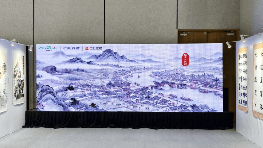 在“欢乐春节·美好安徽走进马来西亚”文旅推介会上,三七互娱依托其自主研发的“小七大模型”制作的两幅AI全息长卷引得现场观众驻足围观。