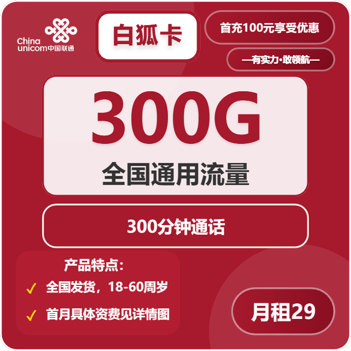 - 流量构成:100G全国流量(含50G通用流量 + 50G定向流量)+ 100分钟通话