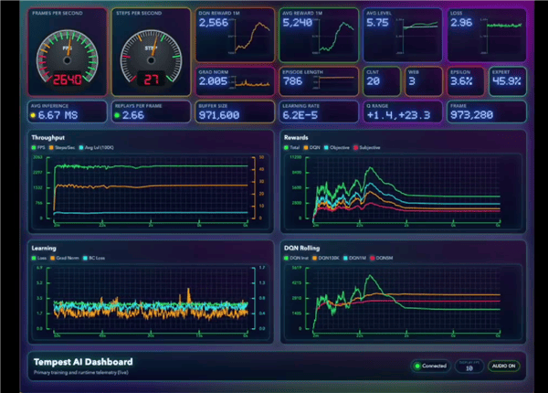 目前,戴夫已在X平台分享了这款仪表盘的实拍图,并且贴心提示,用户可直接前往他的GitHub页面,查看《Tempest AI》的实时仪表盘演示,以及相关开源代码。